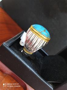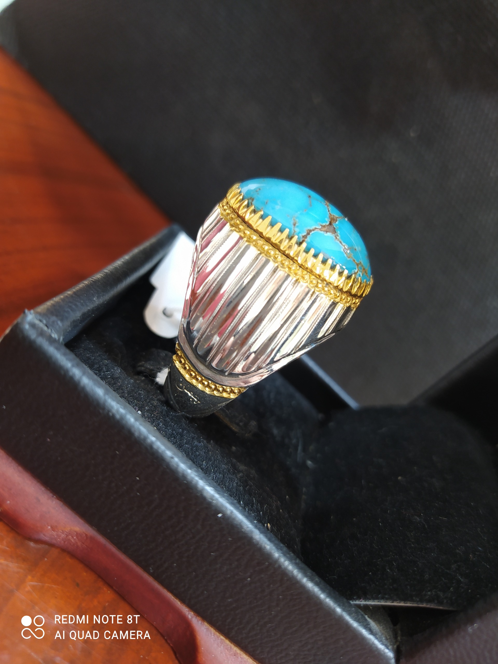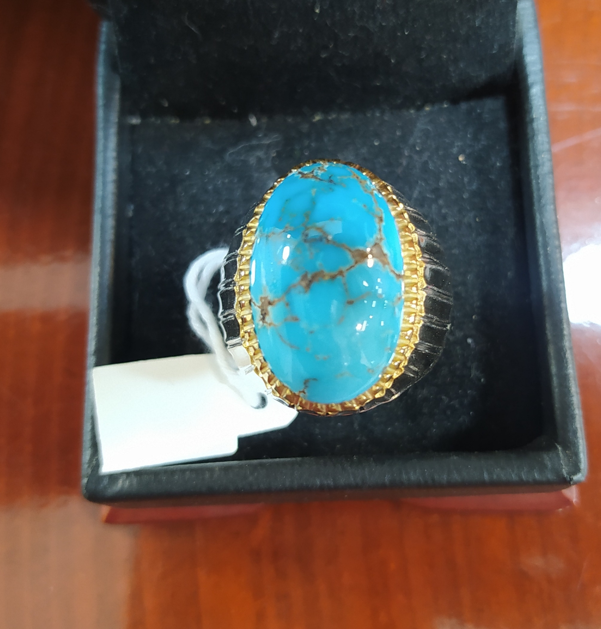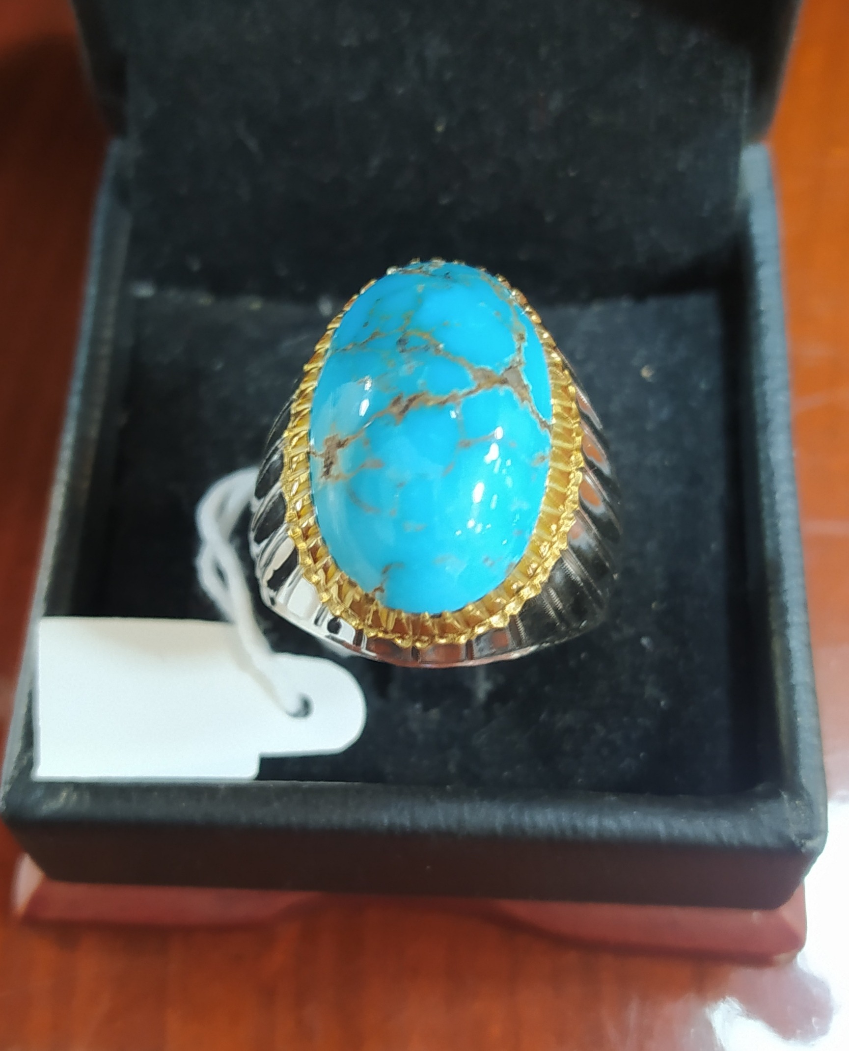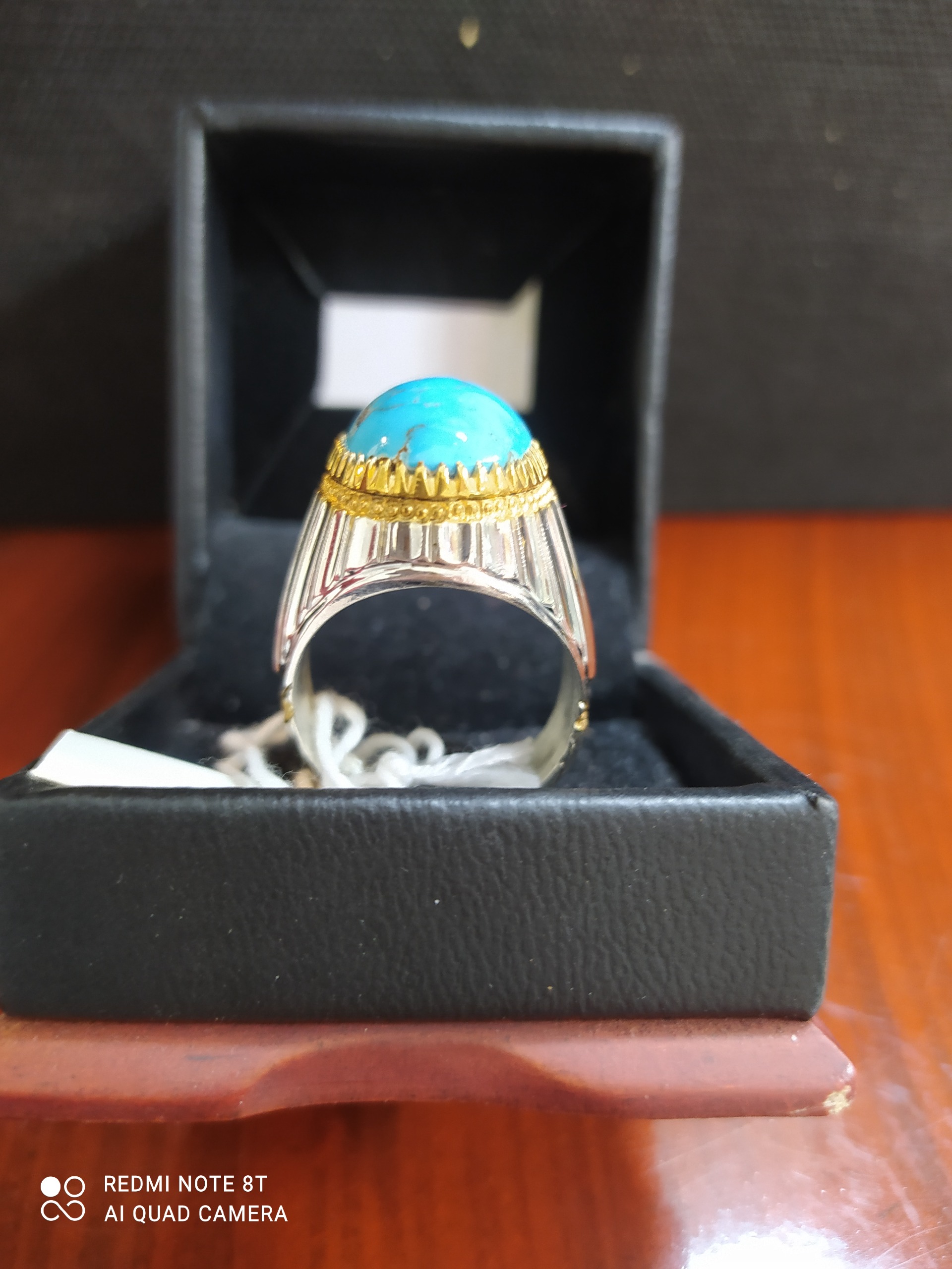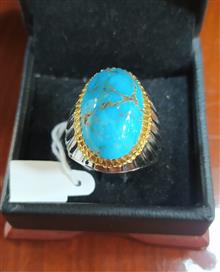 انگشتر نقره مردانه فاخر با سنگ فیروزه نیشابورعجمی