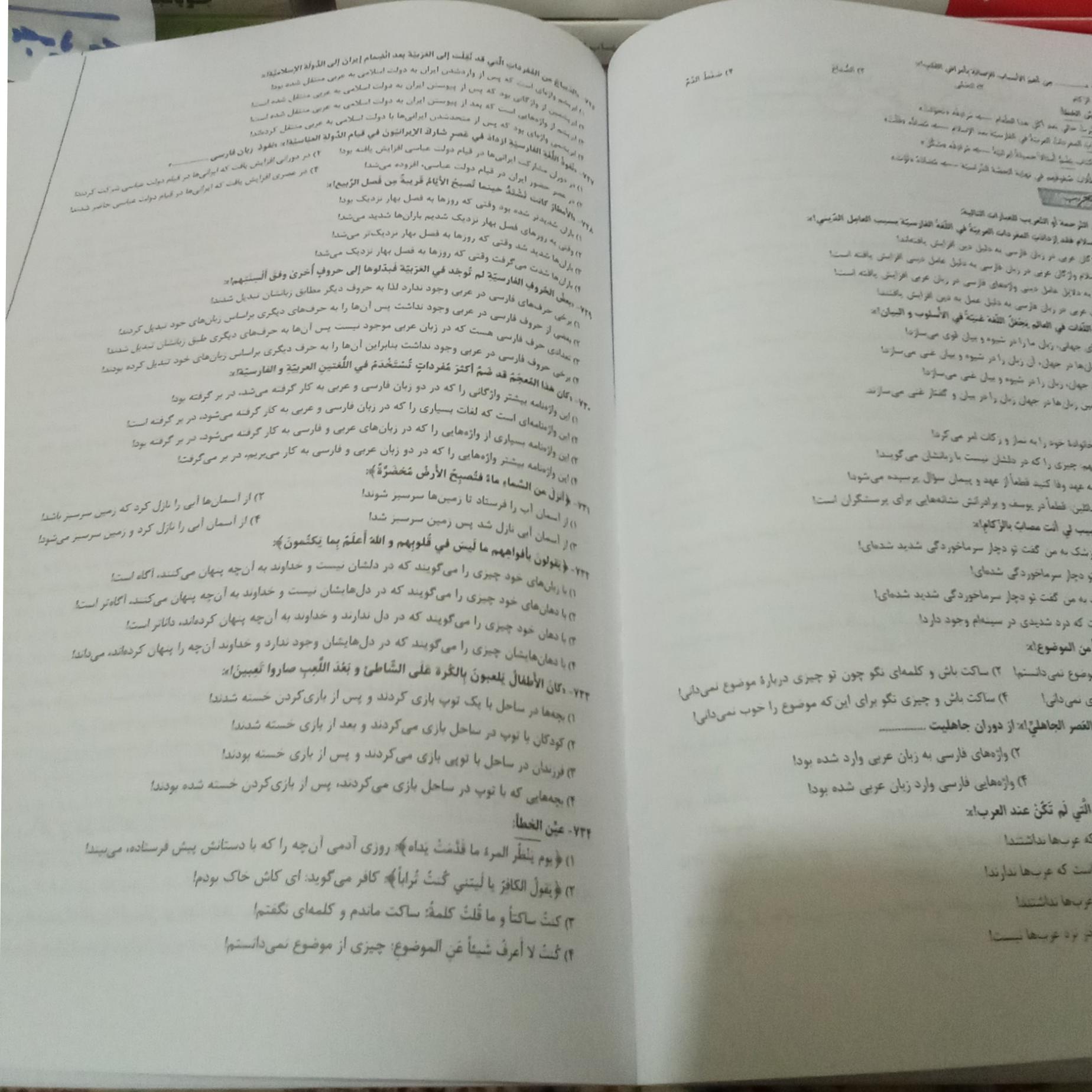 پرسش های چهار گزینه ای عربی