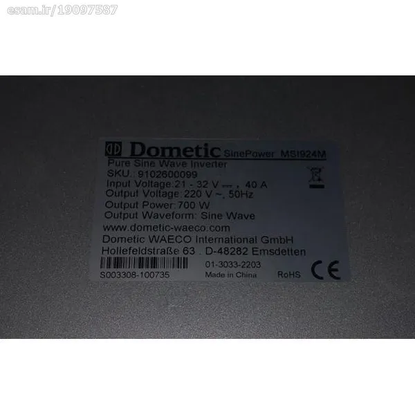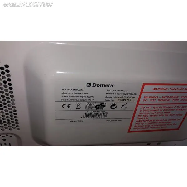 ولتاژ تأمین: 24 ولت DC (از طریق اینورتر وایکو یا دموتیک مخصوص این مایکروویو طراحی شده است)