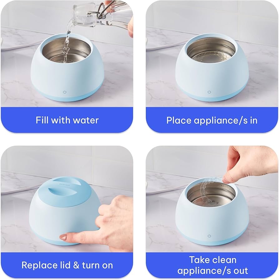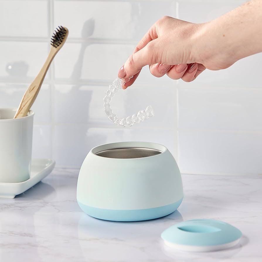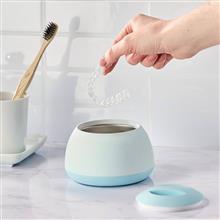 پد دندانی زیما | دستگاه تمیزکننده اولتراسونیک ریتینر | ترازکننده، محافظ شبانه، محافظ دهان، تمیزکننده دندان مصنوعی (آبی آسمانی)