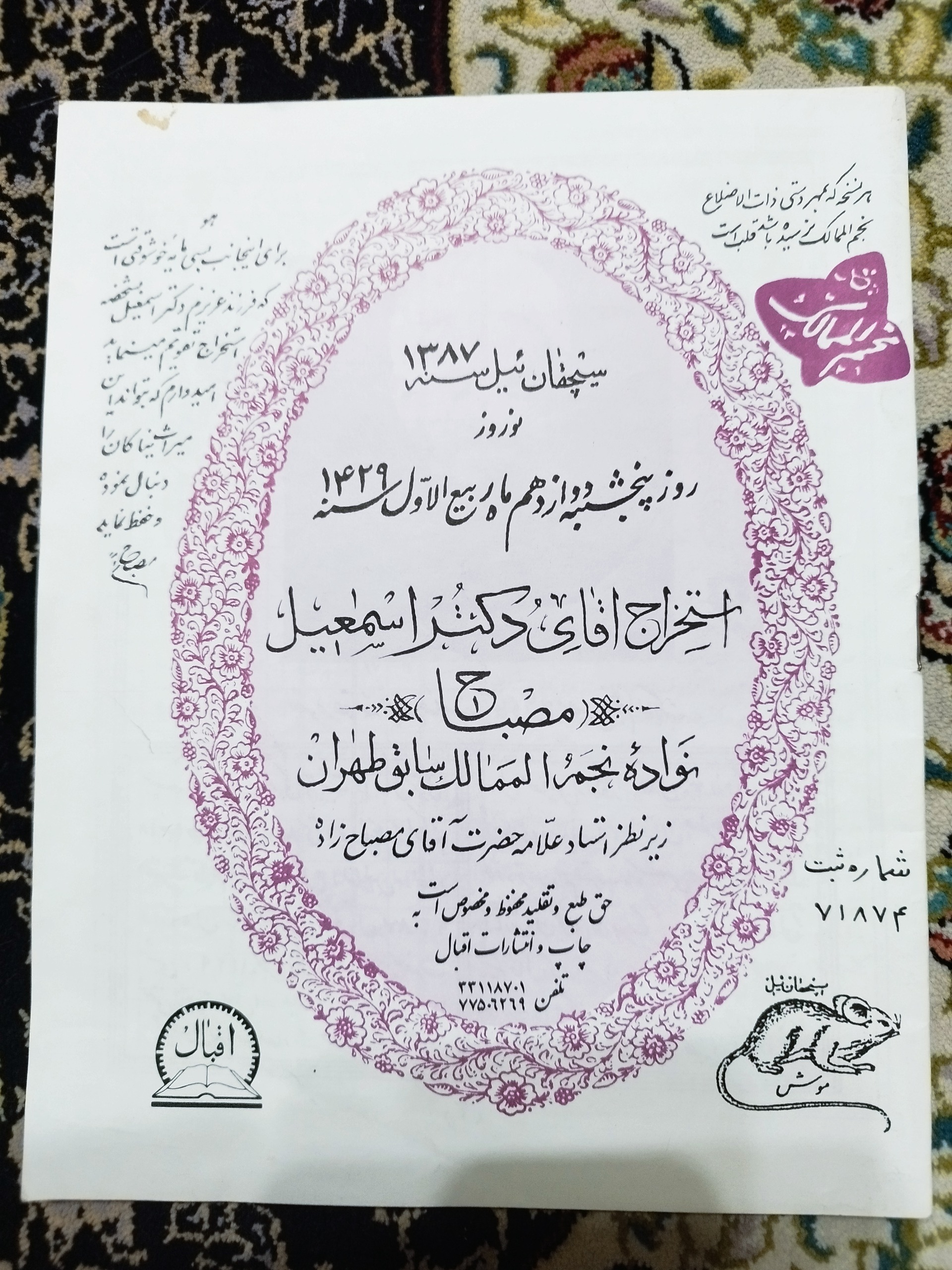 سلام .تقویم نجومی قدیمی کلکسیونی، کاملا نو
