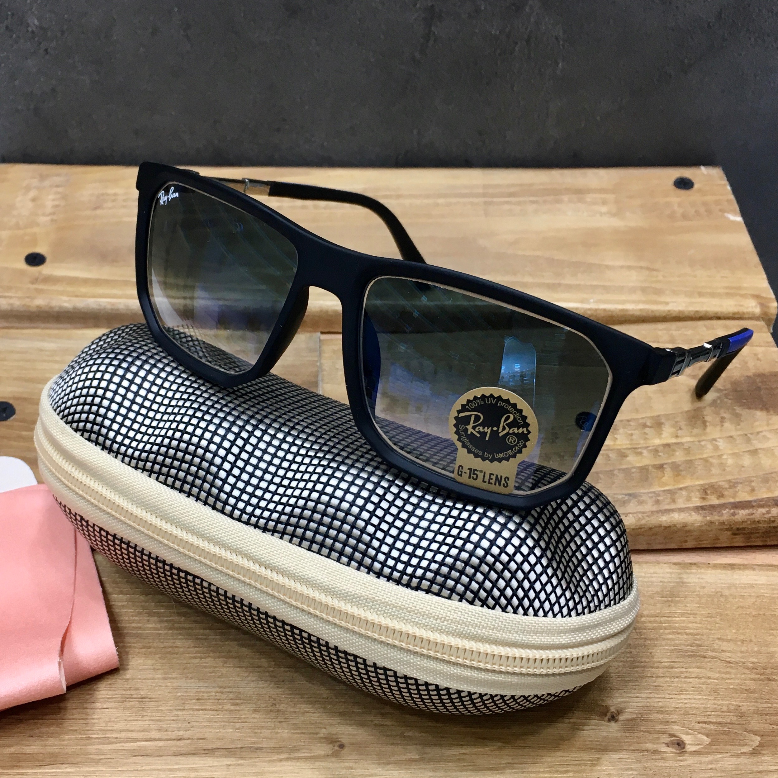 عینک مردانه شیشه سنگ و دسته فنر از برند Rayban