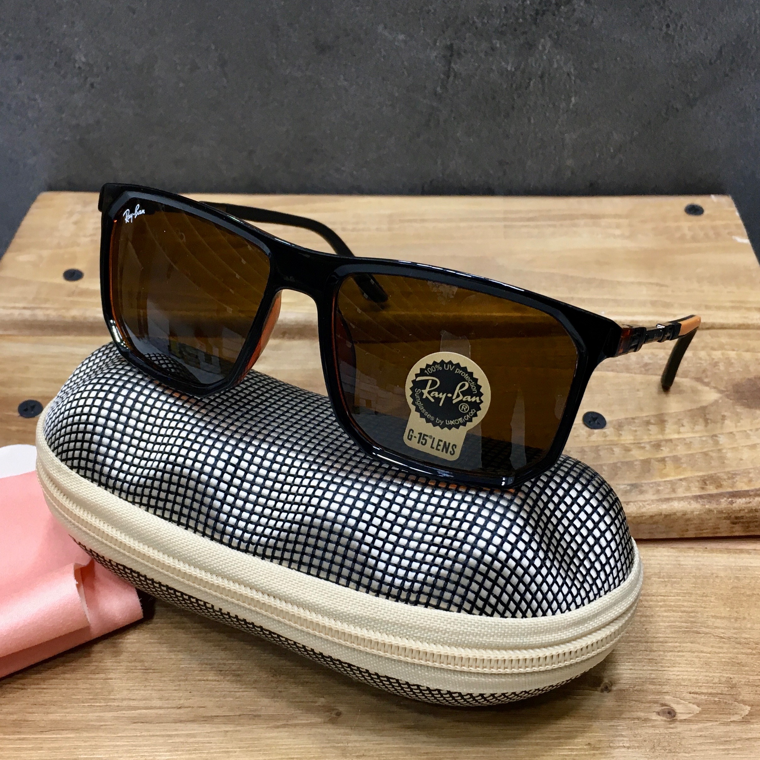 عینک مردانه شیشه سنگ و دسته فنر Rayban