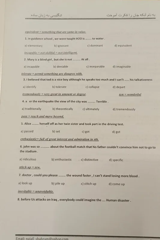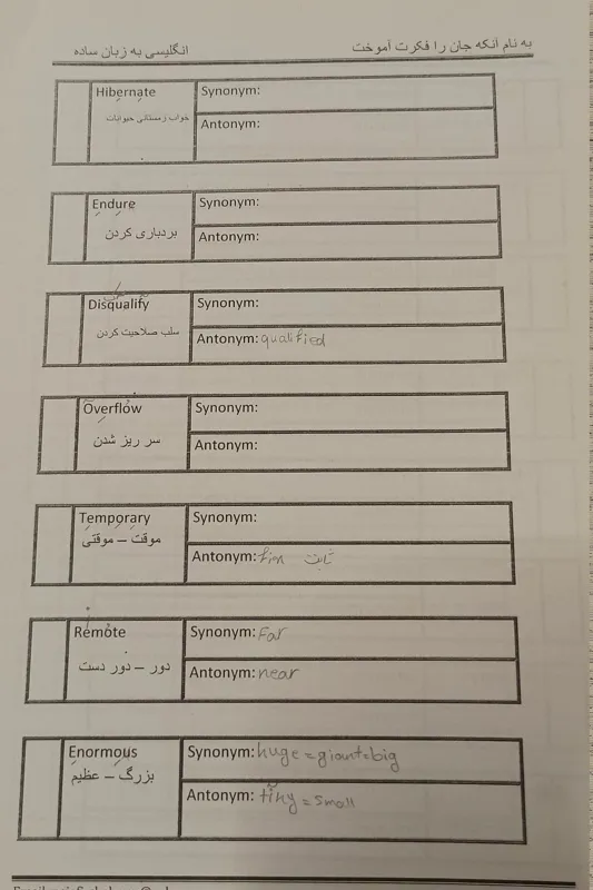 آموزش لغات انگلیسی با ترجمه فارسی