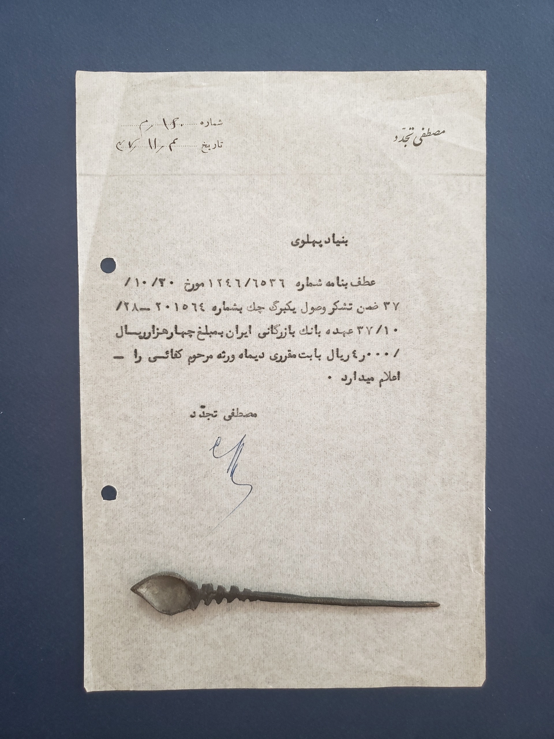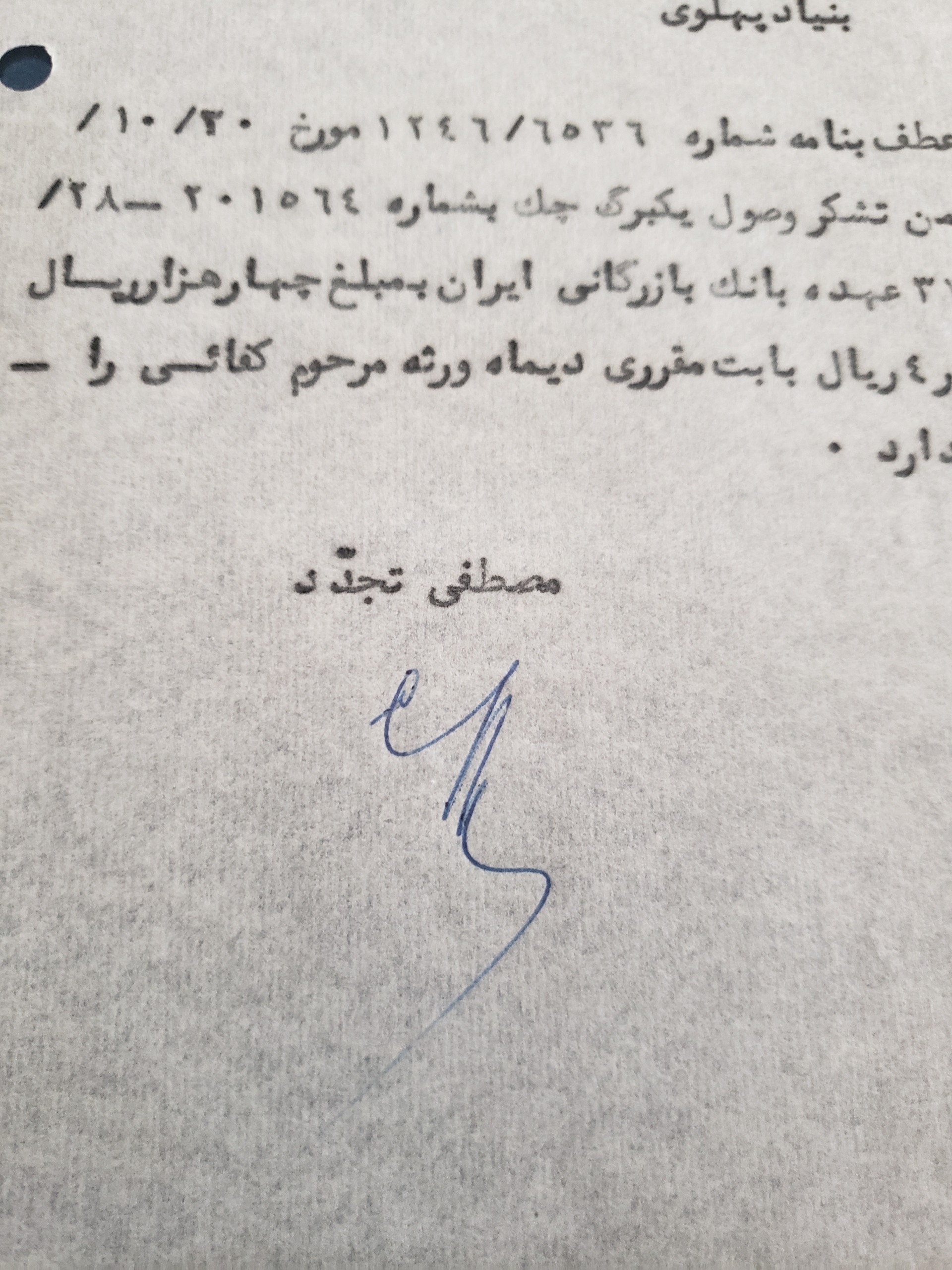 امضا و سربرگ مصطفی تجدد وزیر بازرگانی