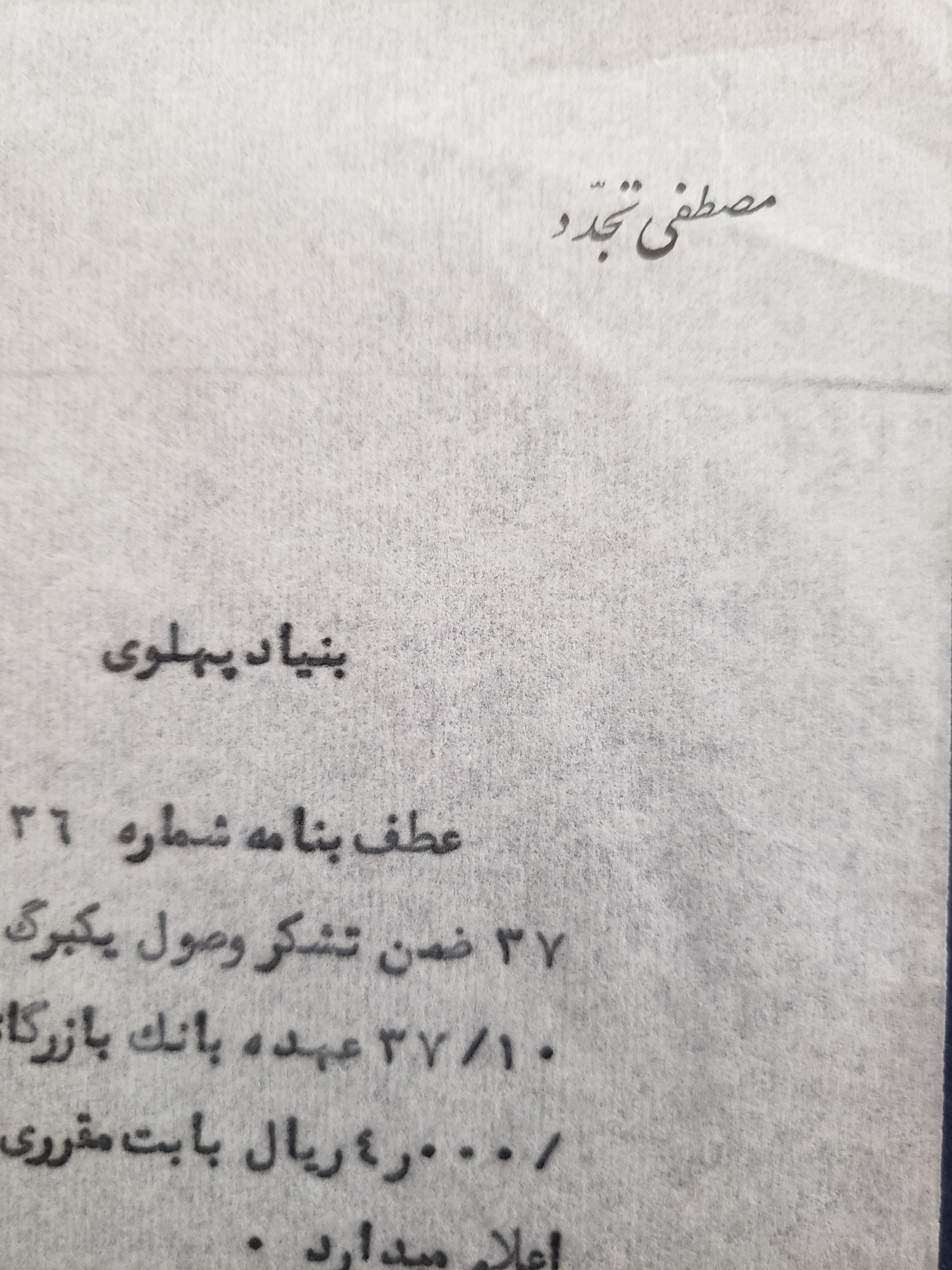 امضا و سربرگ مصطفی تجدد وزیر بازرگانی، رییس بانک بازرگانی، سناتور و سیاستمدار ایرانی