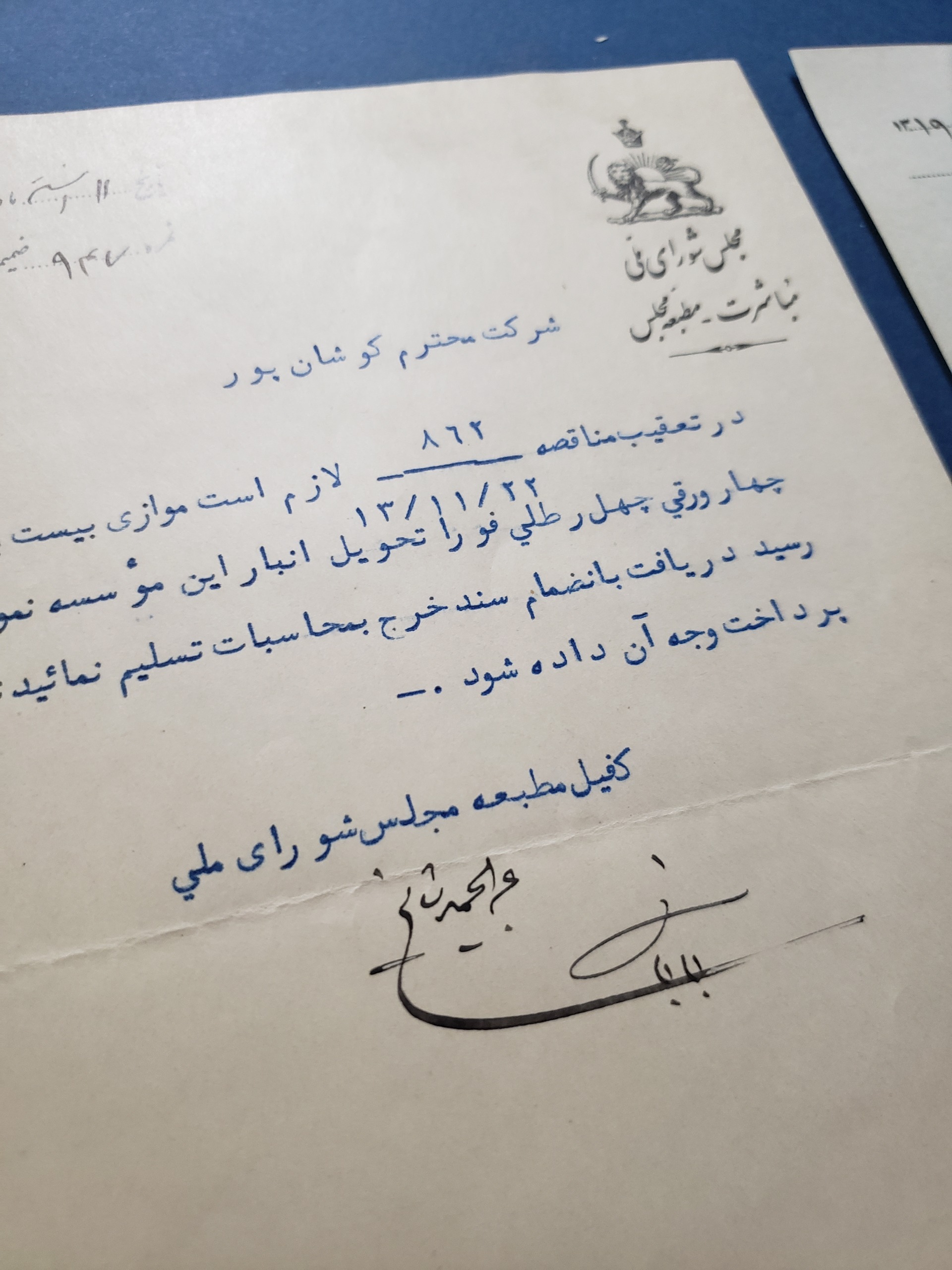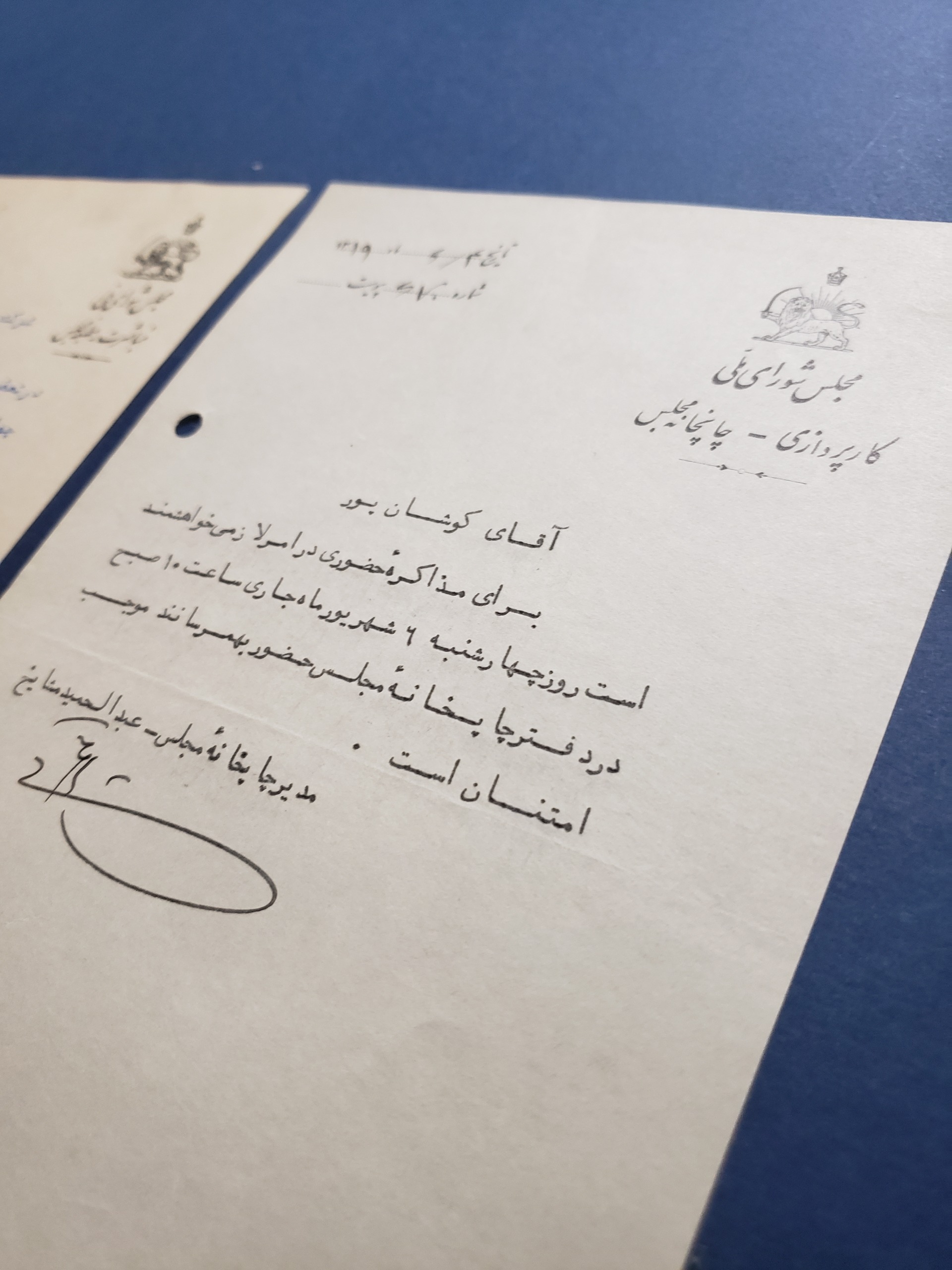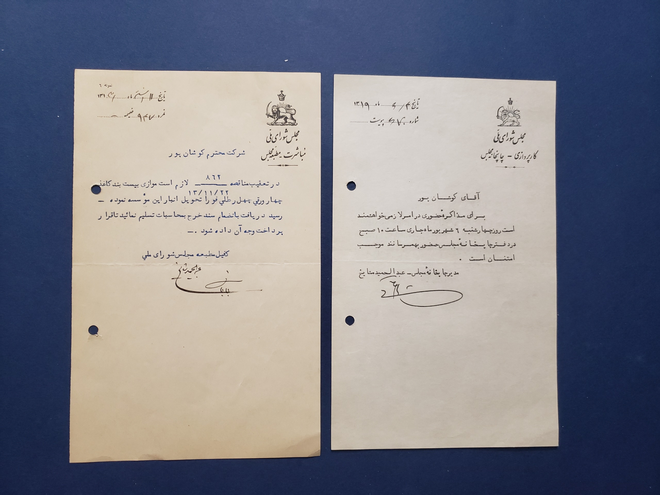 دو نامه از رییس مطبعه مجلس شورای ملی