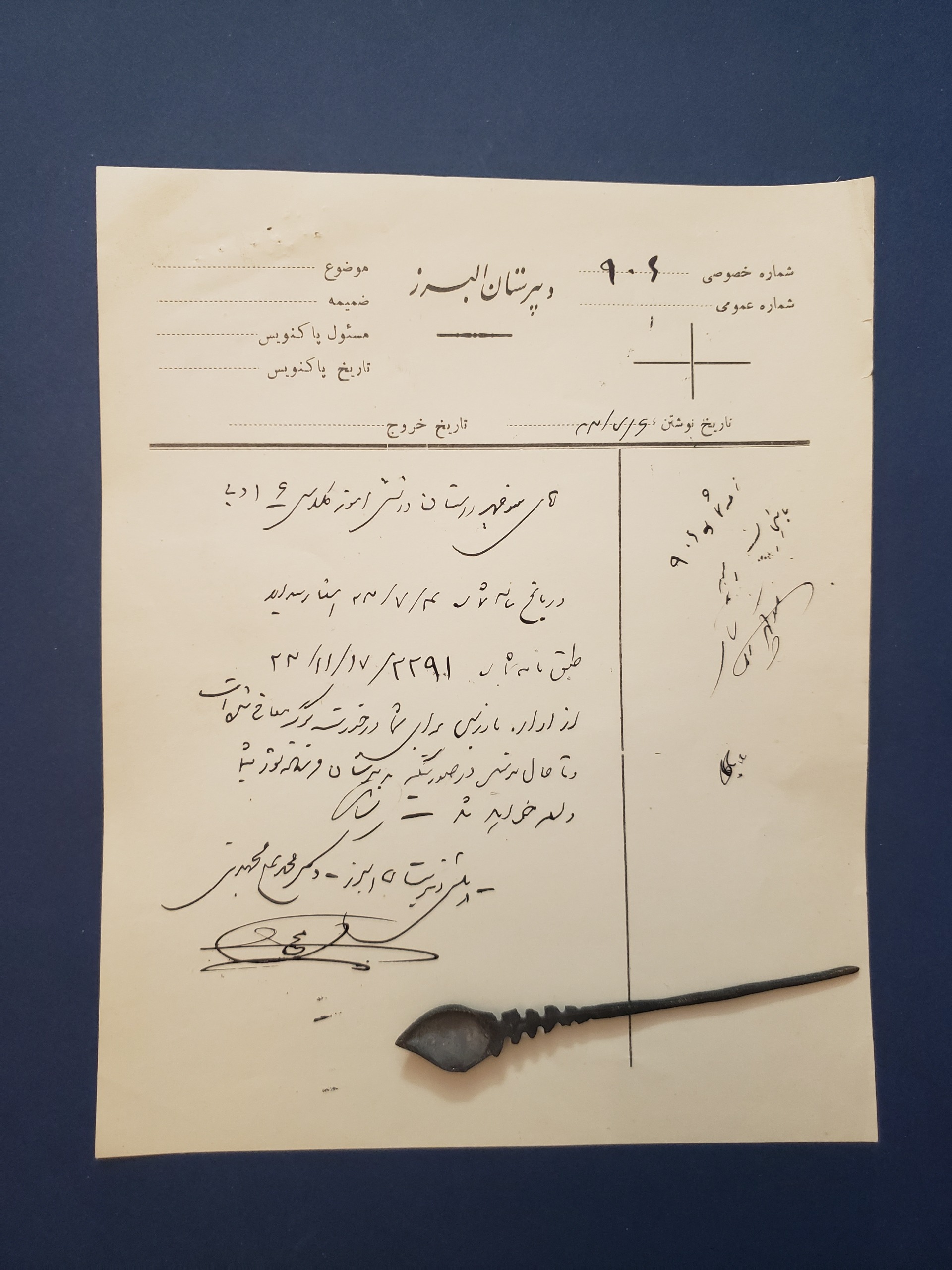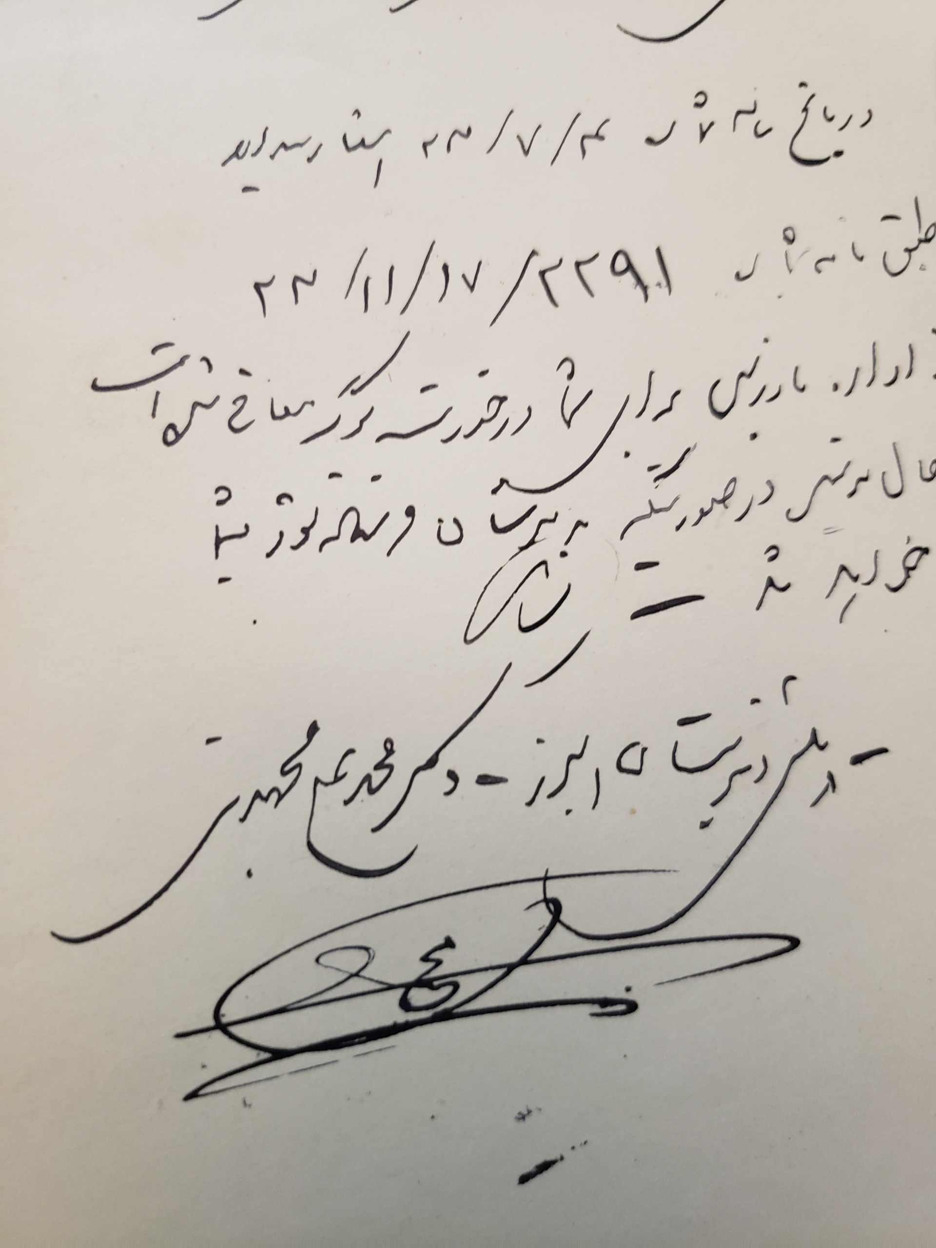 امضا و دستخط محمدعلی مجتهدی سربرگ البرز