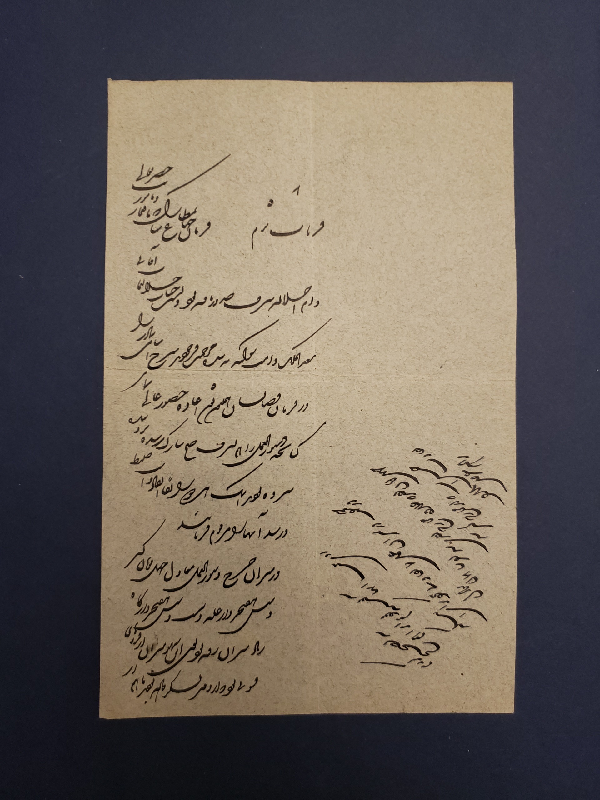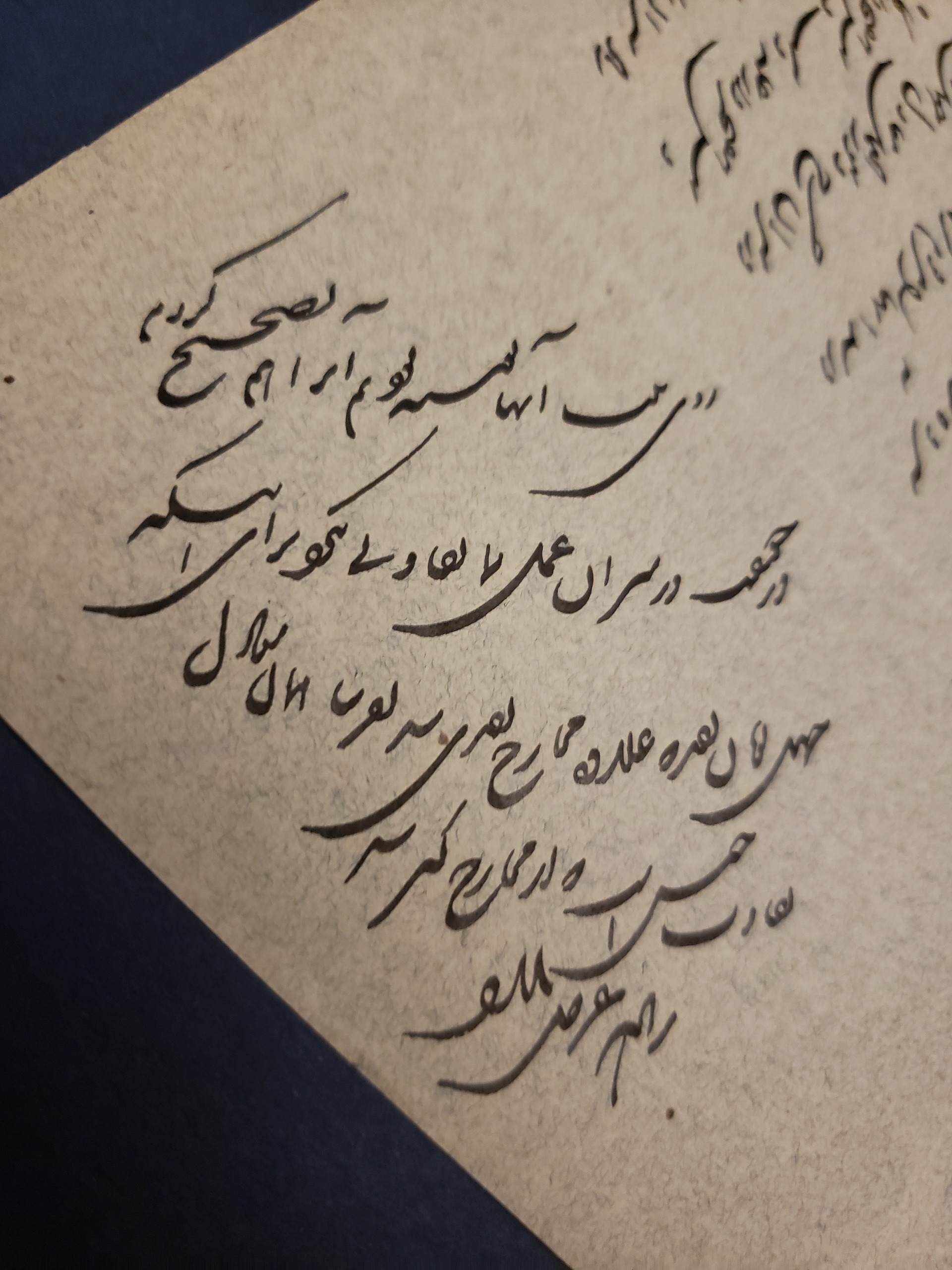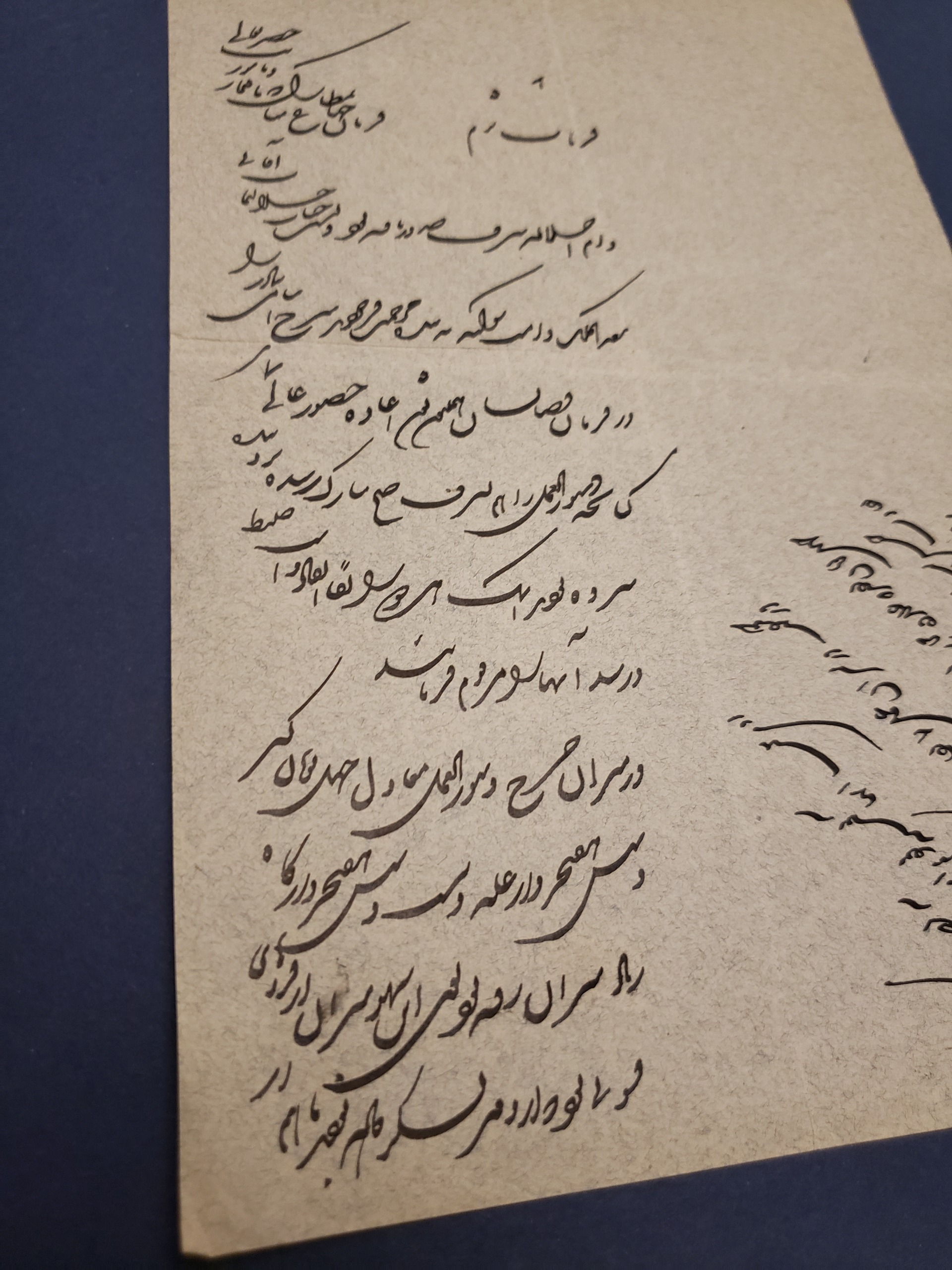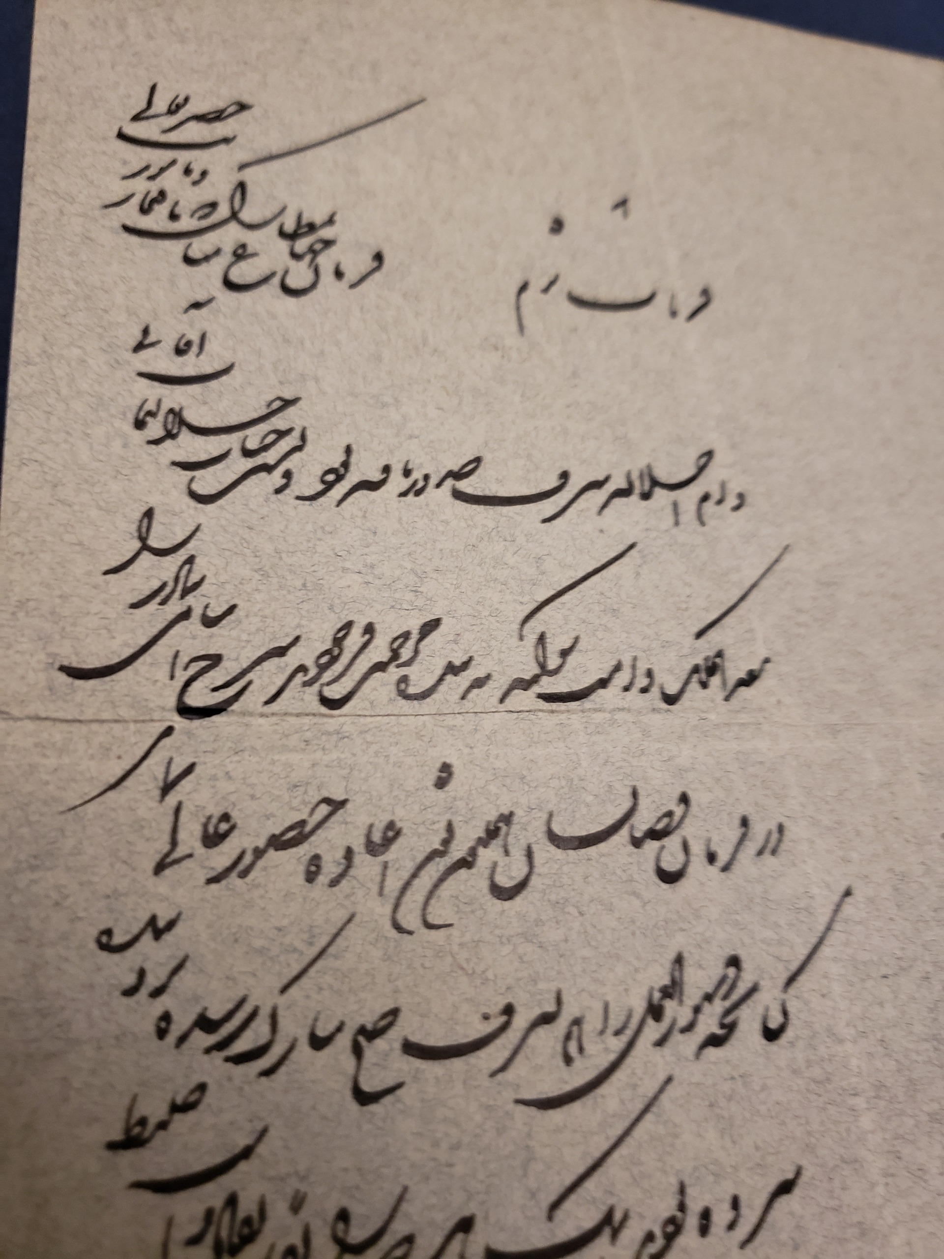 نامه با خط منشی دیوانی بدون نقطه مربوط به اواسط دوران ناصرالدین شاه