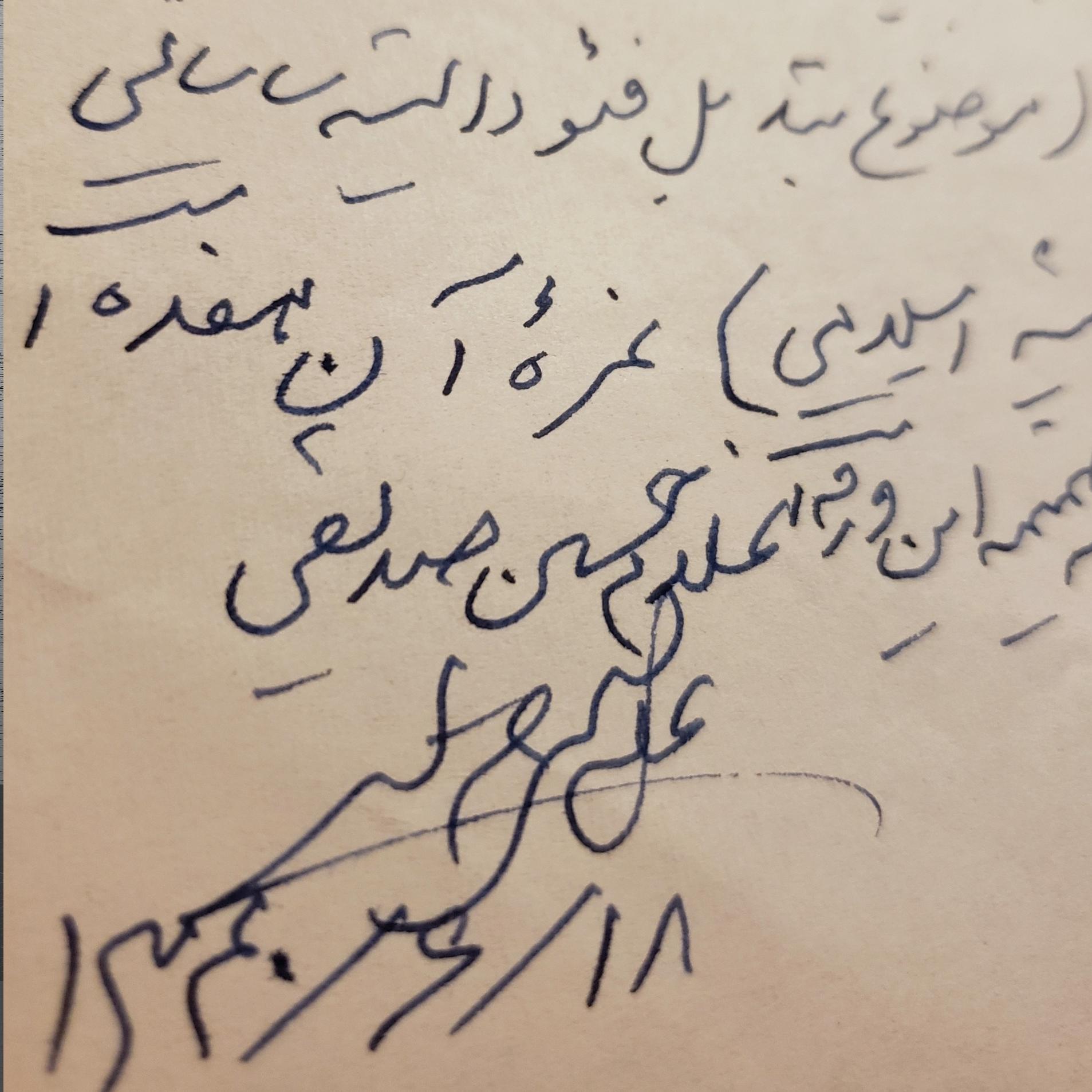 دستخط و امضا دکتر غلامحسین صدیقی از اساتید بنام دانشگاه تهران، وزیر پست و تلگراف و تلفن و کشور دکتر مصدق، و پدر علم جامعه شناسی