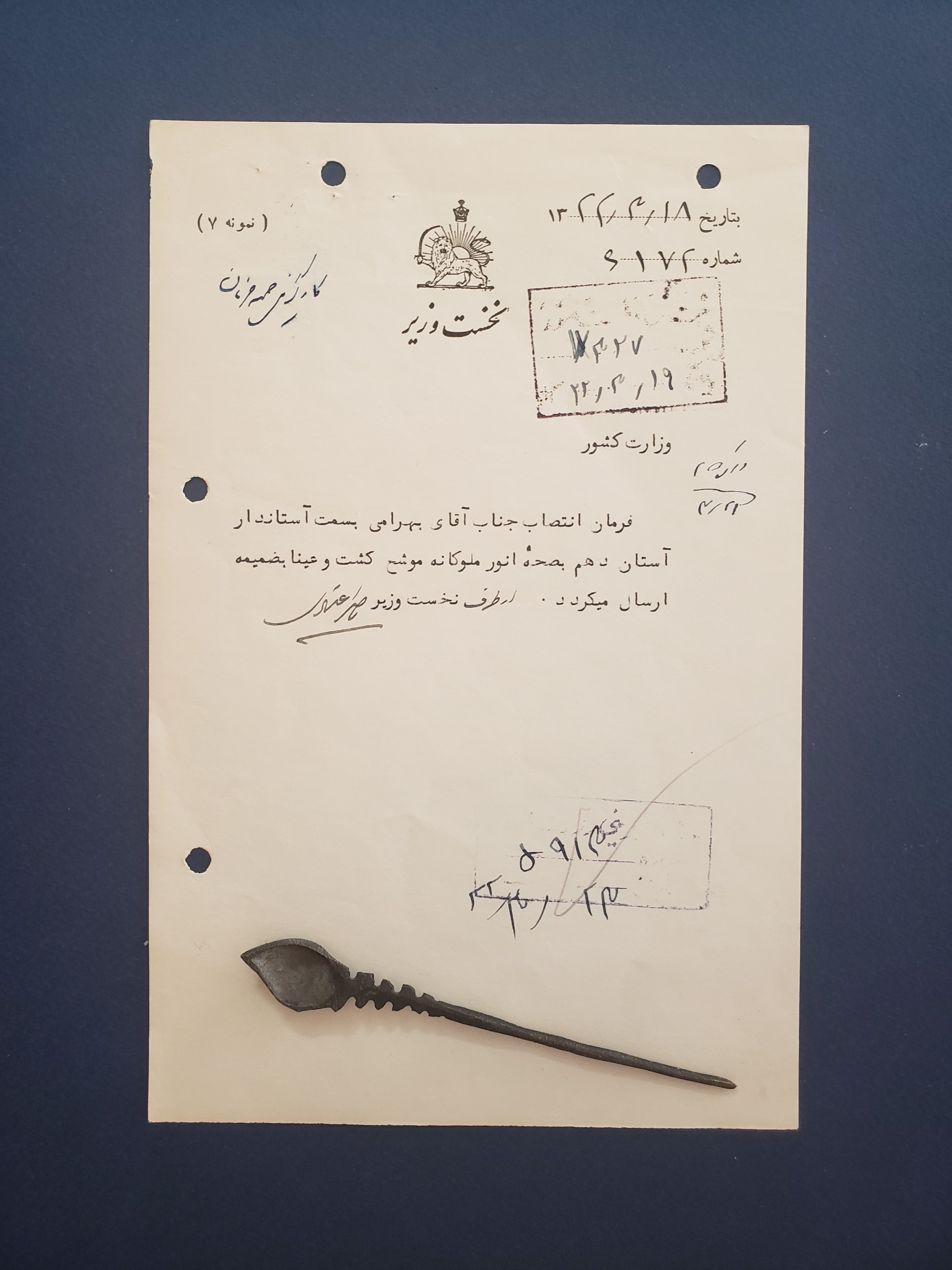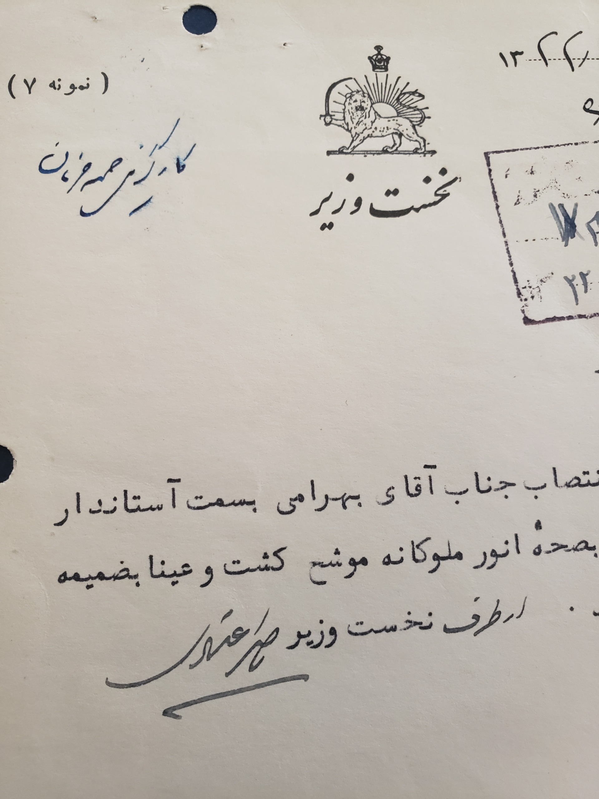 امضا ناصر اعتمادی وزیر کشاورزی، معاون نخست وزیر، استاندلر