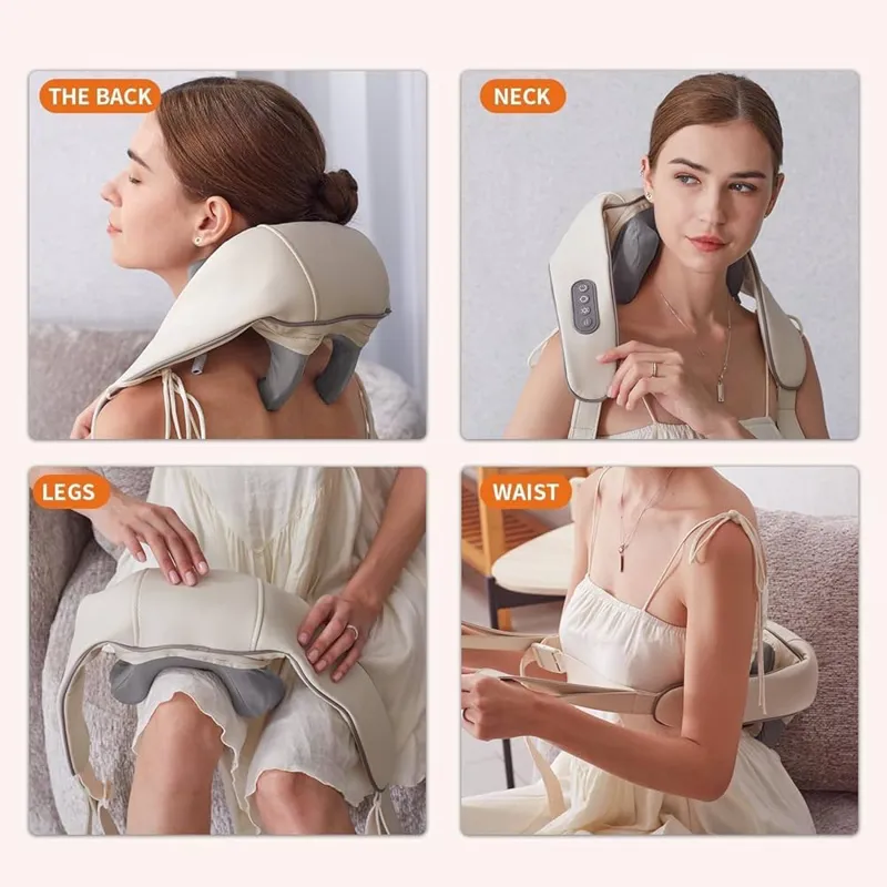 فناوری گرما رلیف: این ماساژور گردن دارای فناوری گرم تسکین است که با ارائه گرمای ملایم برای تسکین عضلات خسته، آرامش را افزایش میدهد و تجربه جوانسازی بیشتری را ارائه میدهد.