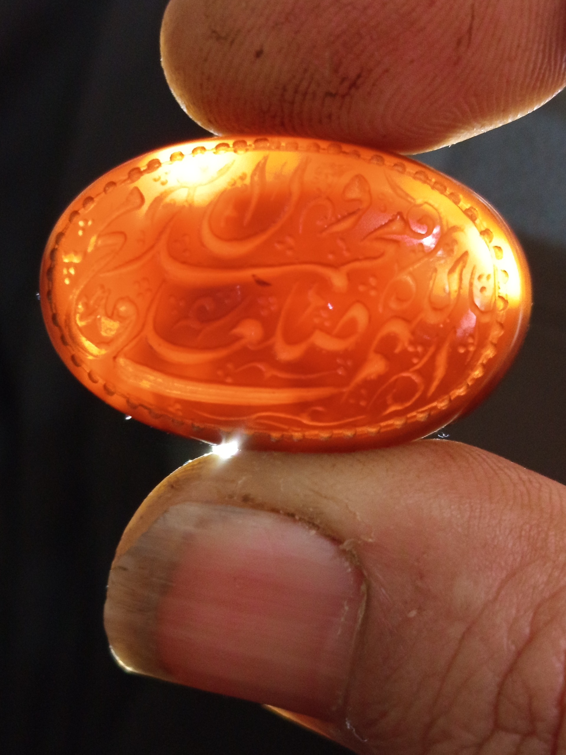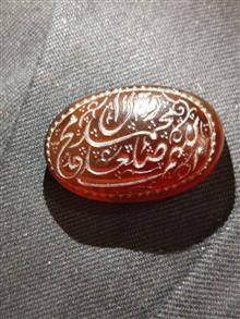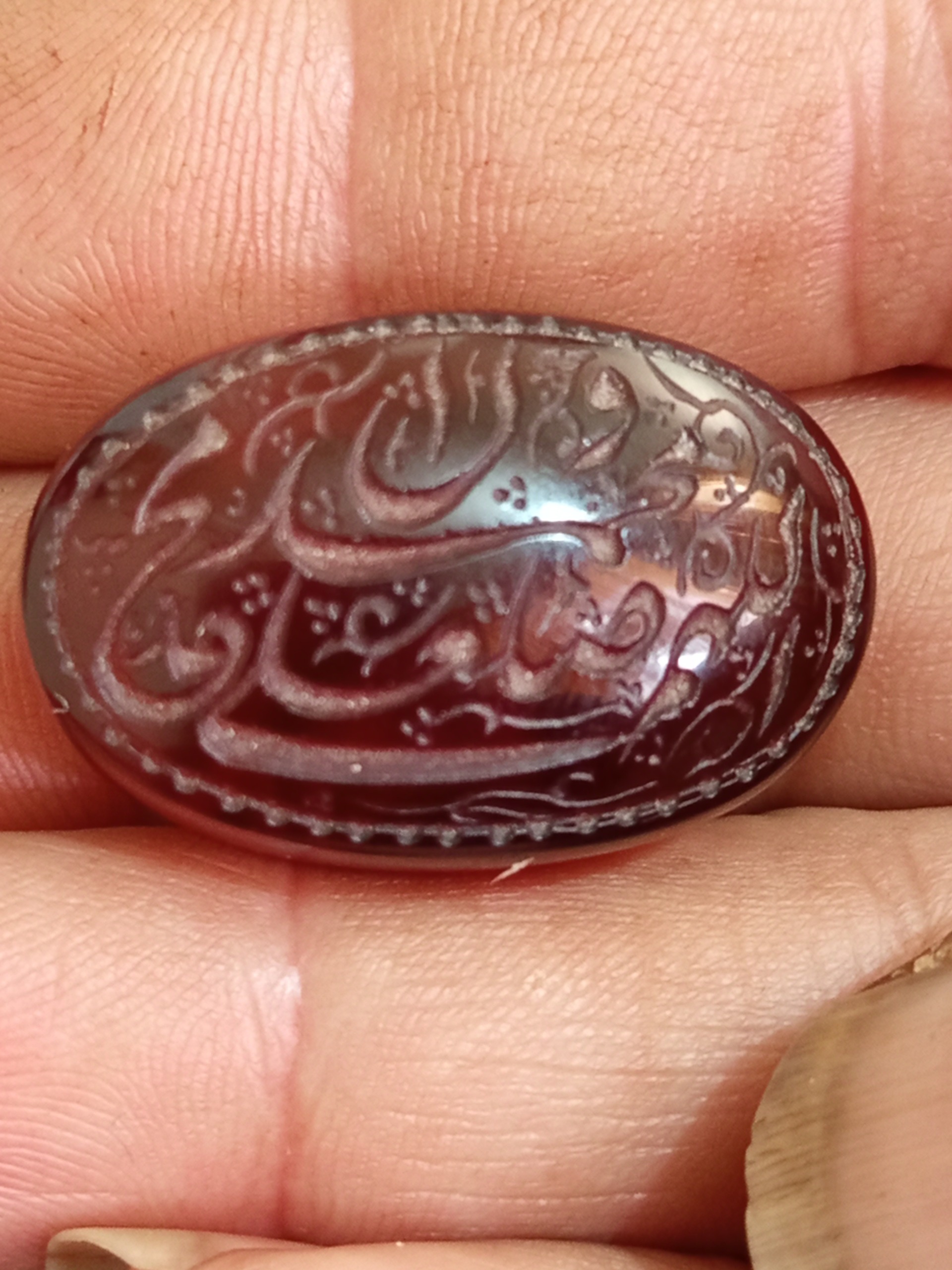 نگین عقیق خطی درشت و دامله با رنگ زیبا اندازه 3٫2 در 2 سانت