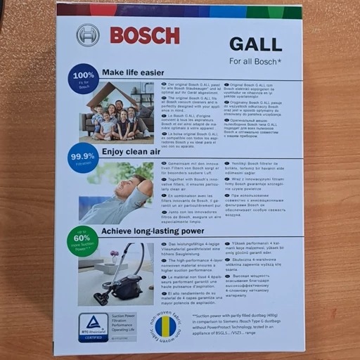 کیسه جاروبرقی بوش مدل G ALL با طراحی 4 لایه و مکش 60 درصدی بیشتر، انتخابی مناسب برای پاکیزگی و نظافت منزل شماست.