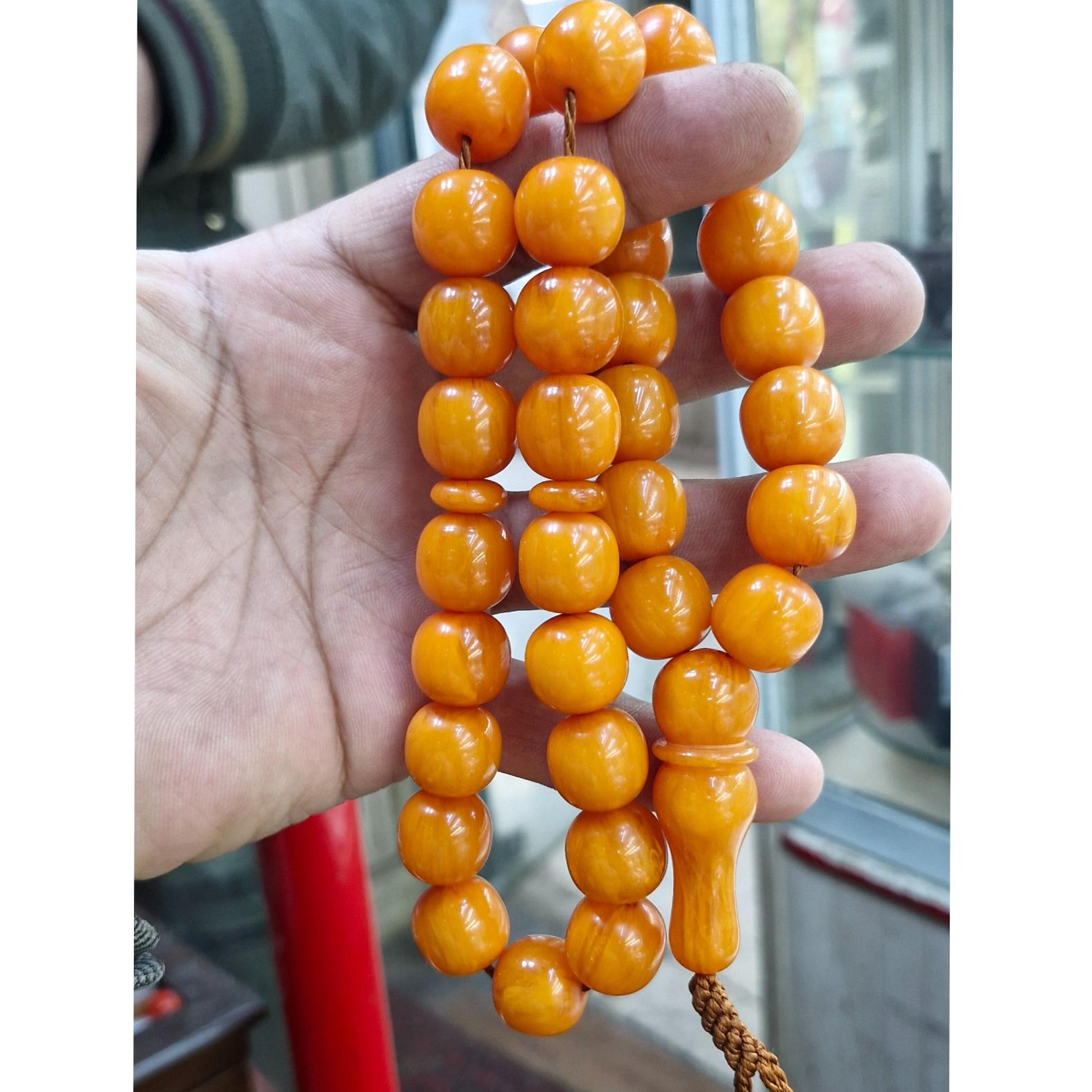 تسبیح سندلوس سی و سه دانه رگه دار شمش آلمان تراش دست وزن 102گرم طول32سانت خش رنگ وخوش دست
