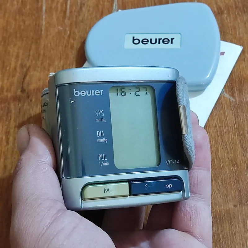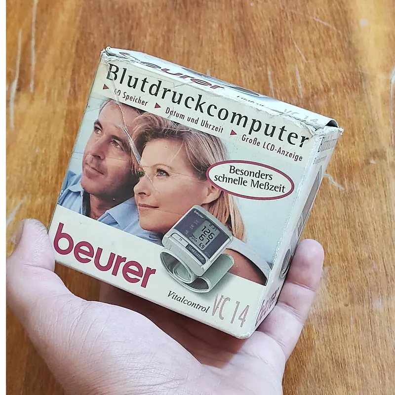 یک عدد دستگاه فشار دیجیتال آلمانی مچی با جعبه و دفترچه در حد نو سالم و دقیق و تمیز مطابق تصویر