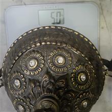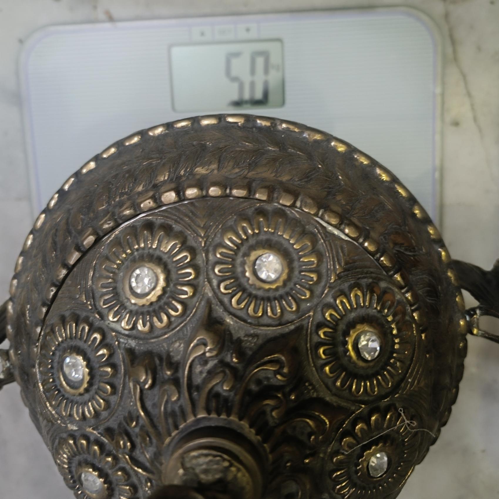 شکلات خوری بزرگ و بسیار سنگین برنجی نگین دار که همه نگین ها سالم ، کاسه داخلی از جنس روحی ، کیفیت و ابعاد مطابق تصویر