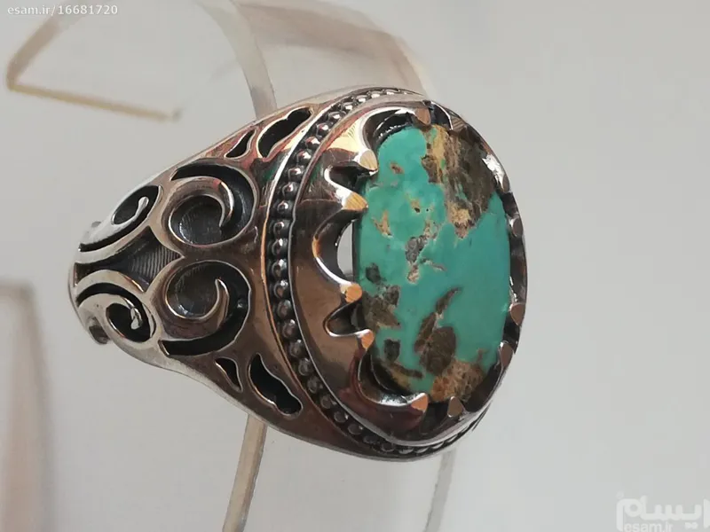 انگشتر فیروزه شجر اصل نیشابوری با رکاب فاخر نقره