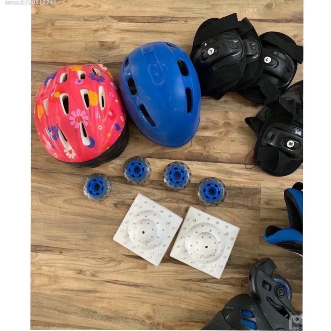 کفش اسکیت و دو عدد کلاه اسکیت و تایر زاپاش و کیف