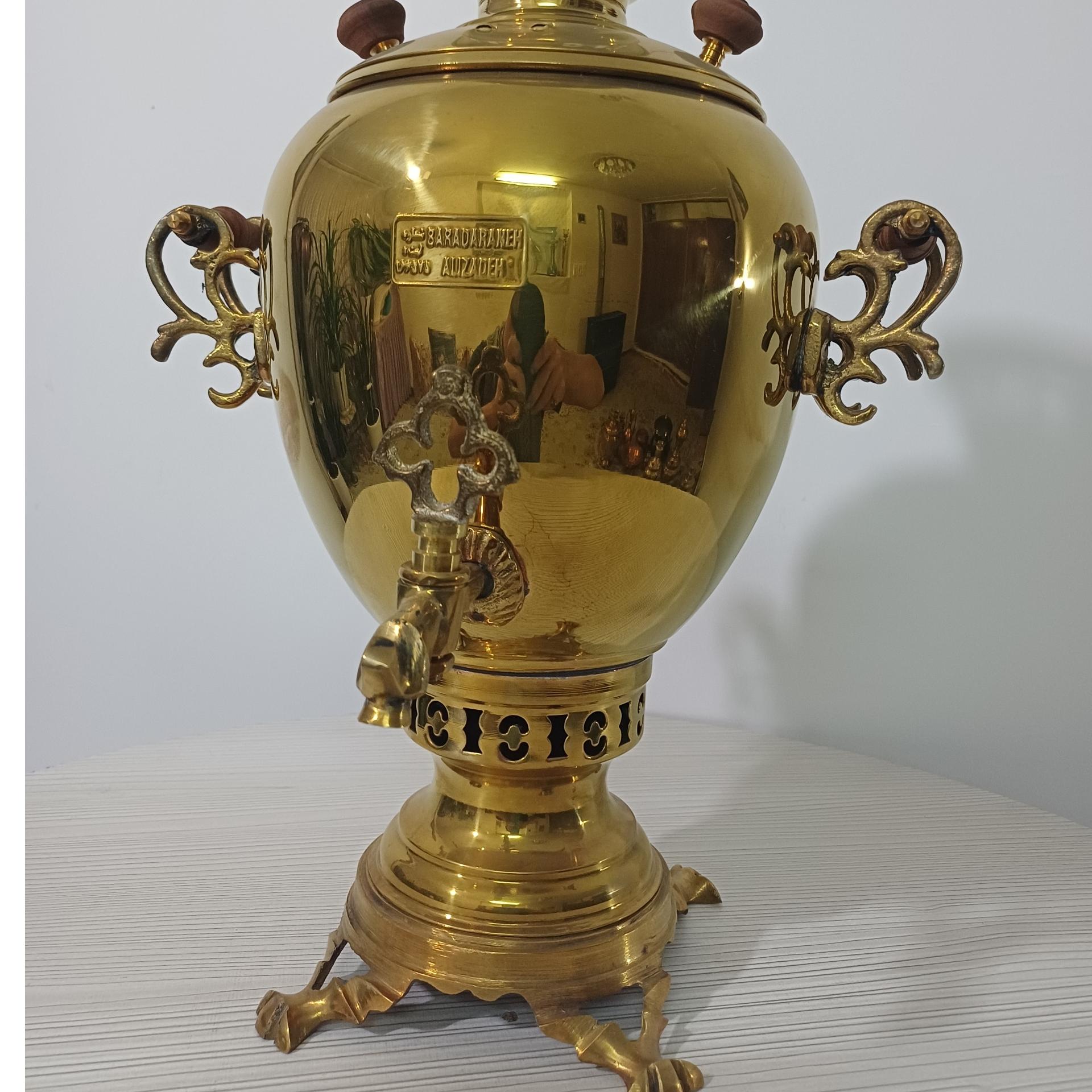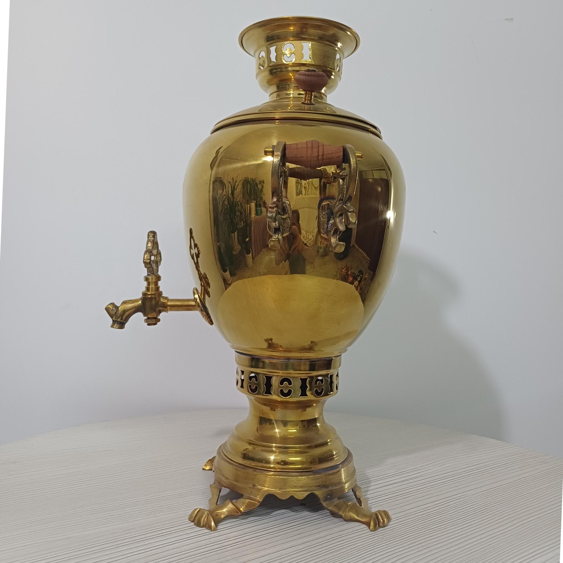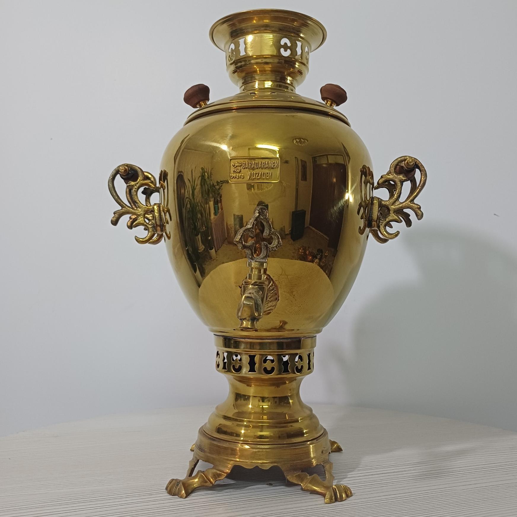 سماور زغالی تمام برنجی مدل تخم مرغی