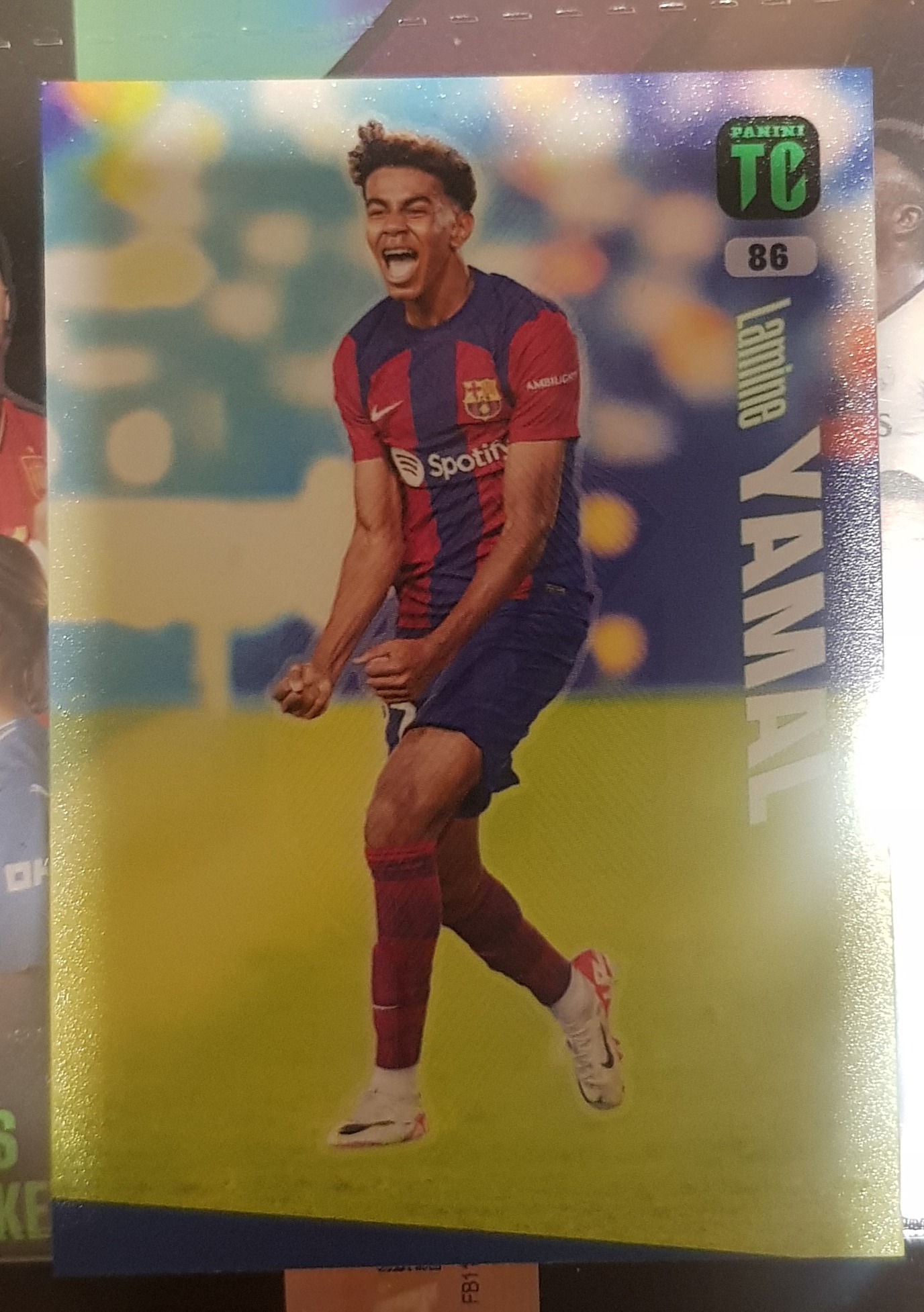 کارت روکی لامین یامال با پیراهن بارسلونا، برند پانینی، اوریژینال، نایاب، سری تاپ کلاس 2023-2024 پانینی، طبق تصویر