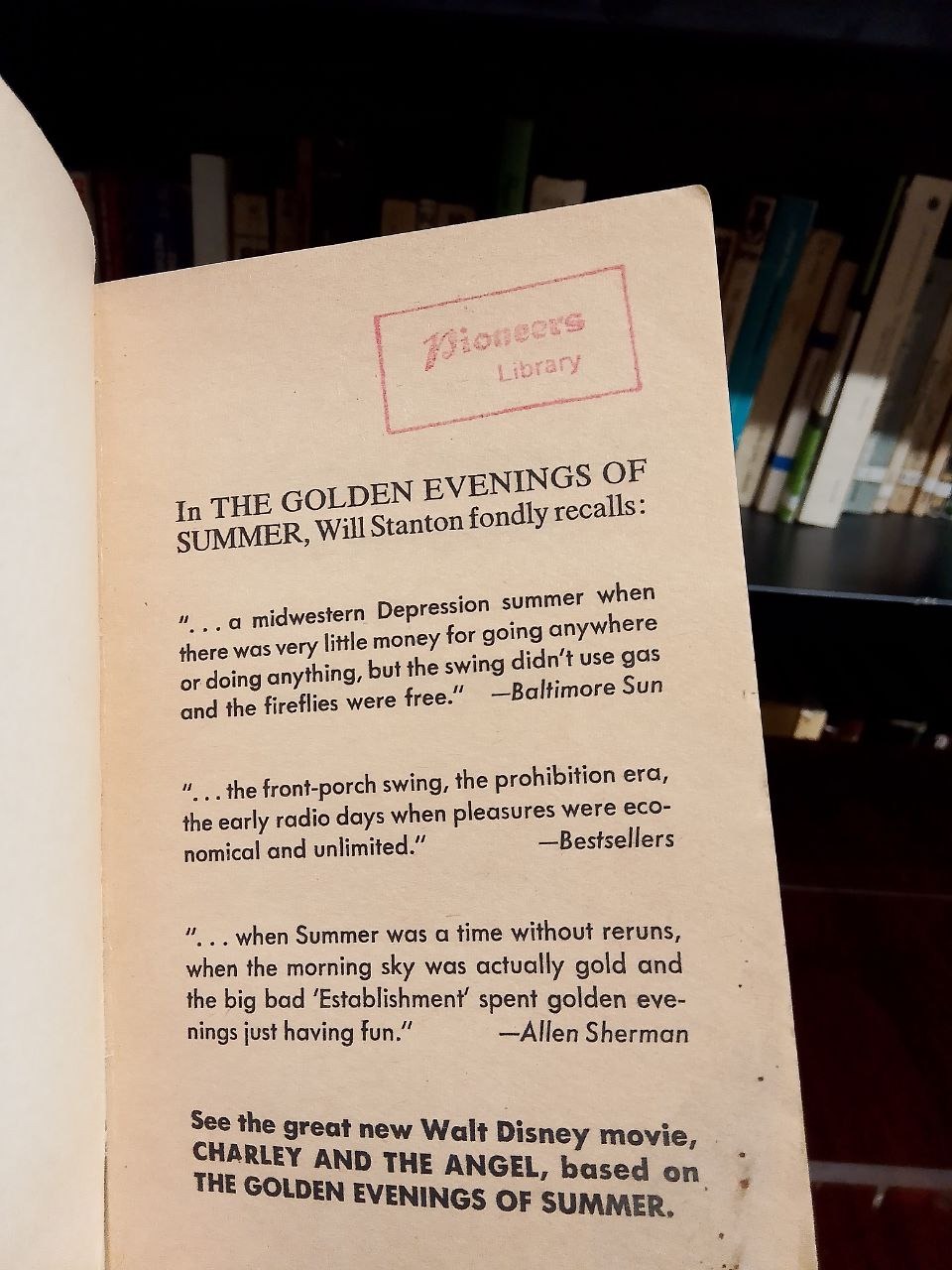 · این کتاب خاطراتی از دوران کودکی نویسنده در تابستانهای میانه غرب آمریکا و دوران رکود بزرگ (Depression) است.