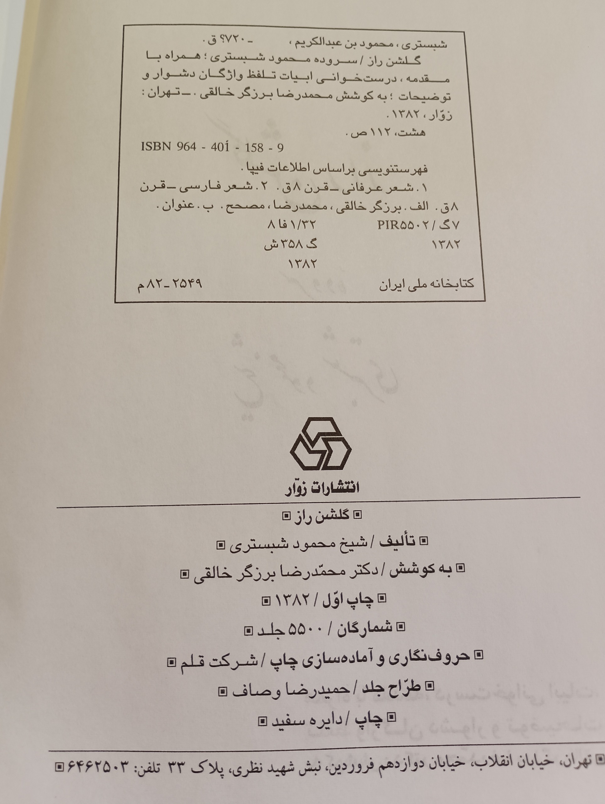 کتاب شعر گلشن راز شیخ محمود شبستری