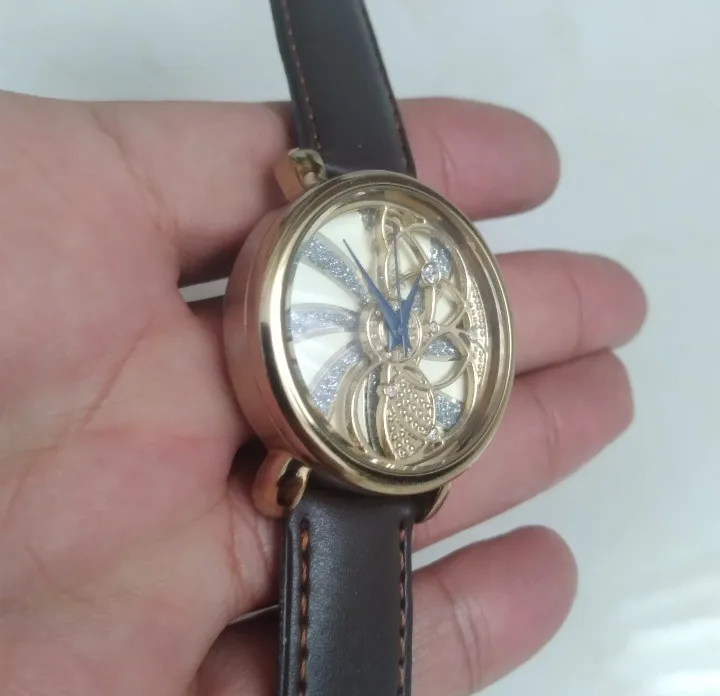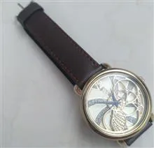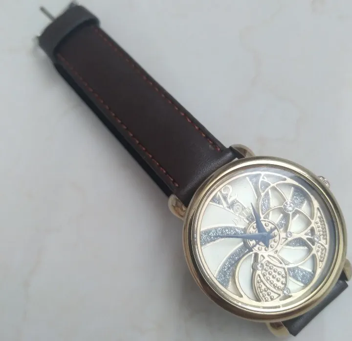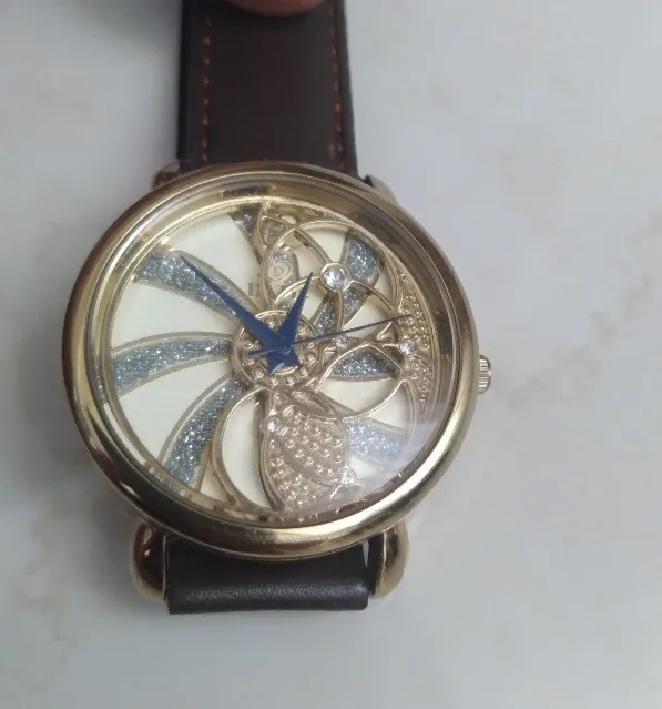 با باتری کار میکنه صفحه طلایی زیر عقربه ها به به شکل زنبور یا پروانه است میچرخد