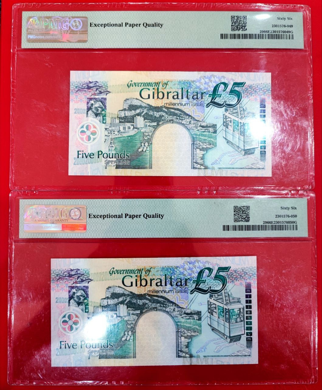 جفت 5 پوند بسیار کمیاب یادبودی سال 2000 جبل الطارق گرید شده توسط کمپانی pmg 66