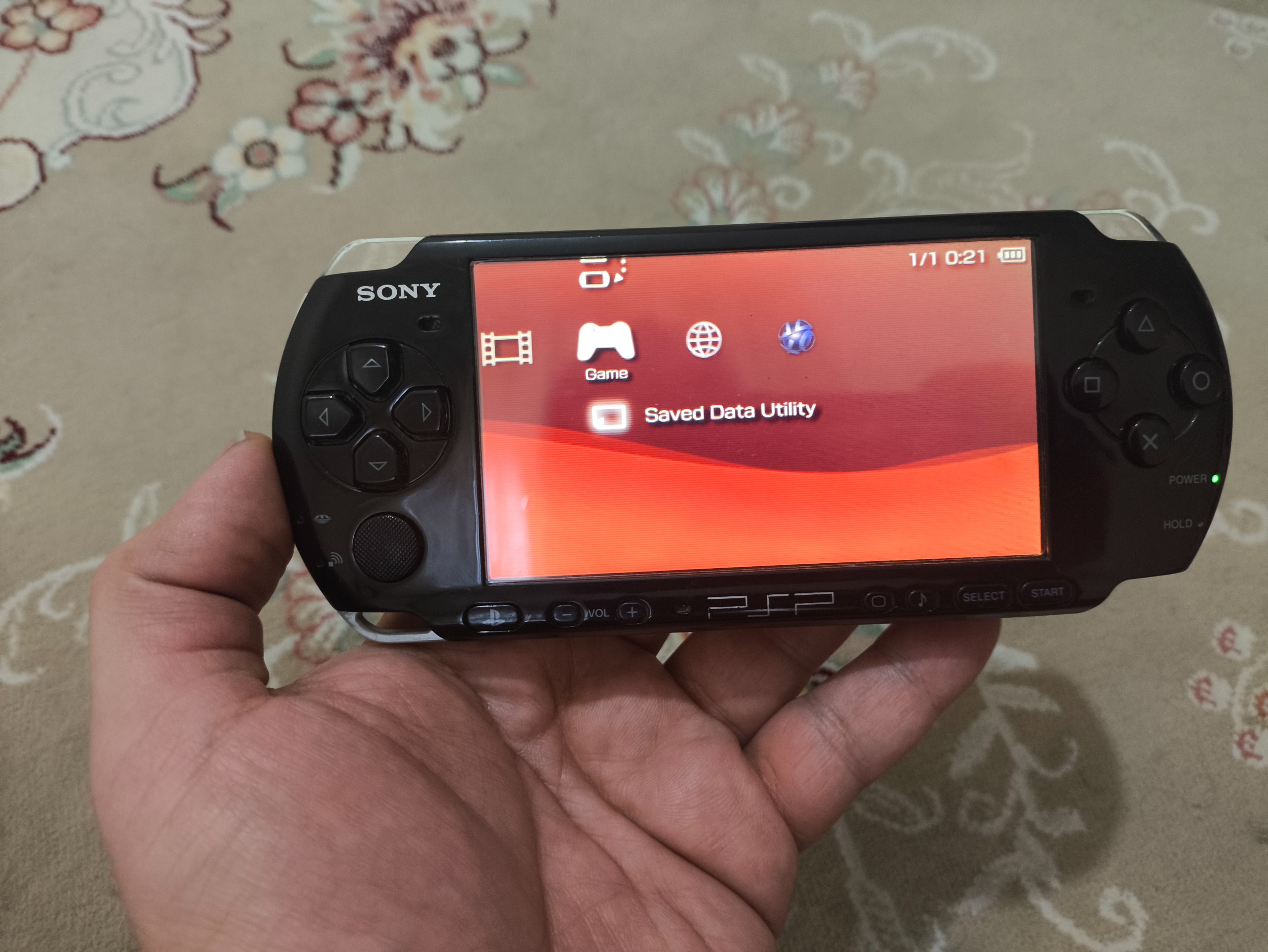 Psp 3000 Sony بسیار سالم و تمیز و آماده بازی بدون هیچ مشکلی جعبه ندارد .صفحه گلس از اول روش بوده پشت دستگاه درب یو ام دی کمی رنگ پریدگی داره باتری سالم بالای 4 ساعت بازی رم 4 شارژر اصلی