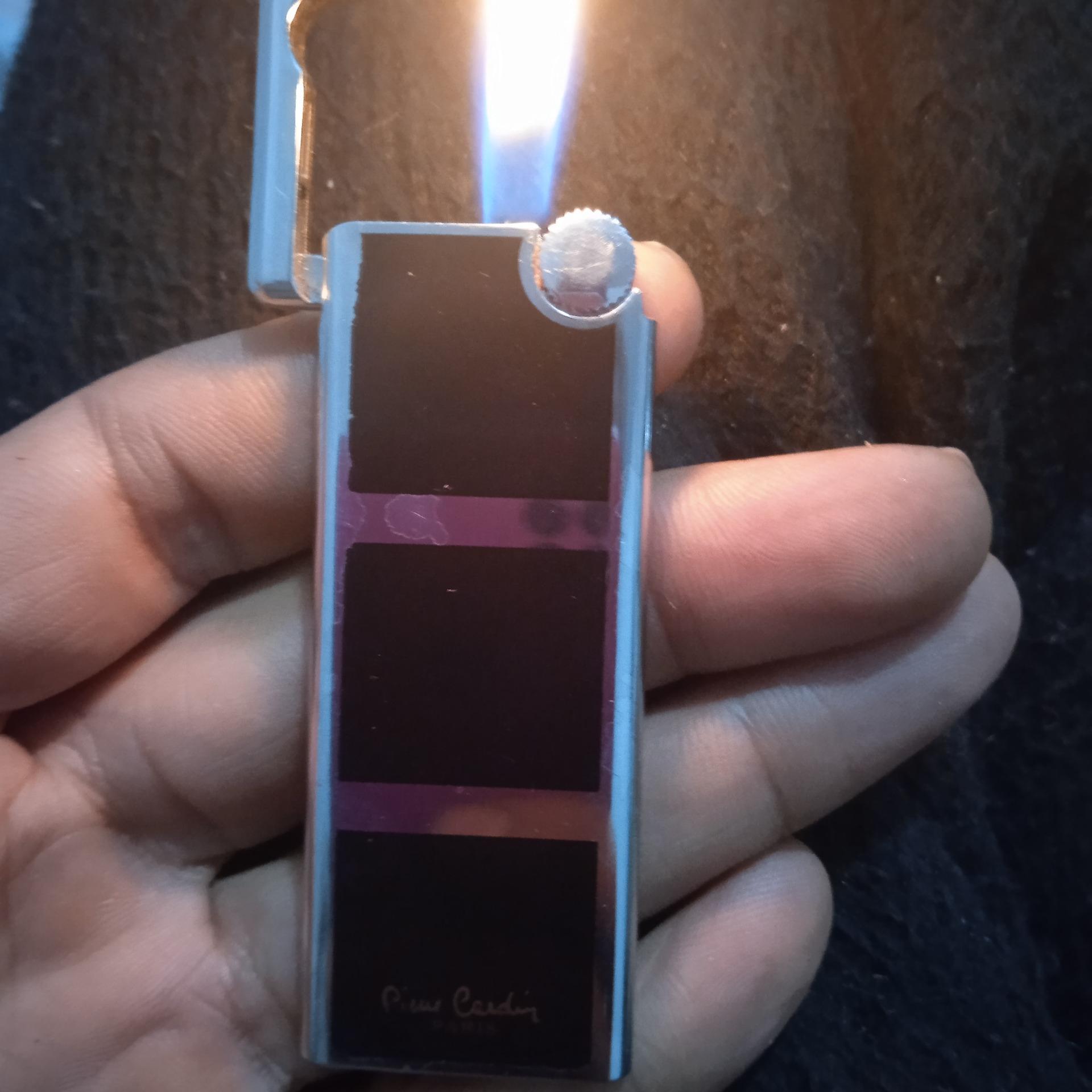 فندک تمام فلزی گازی وسنگی بسیار ظریف نازک ضخامت کمی دارد خوش دست گازی اصلی ساخت پاریس برند معروف کاملن سالم رنگ روی آن متغیر در نور مناسب هدیه و استفاده .کلکسیونری