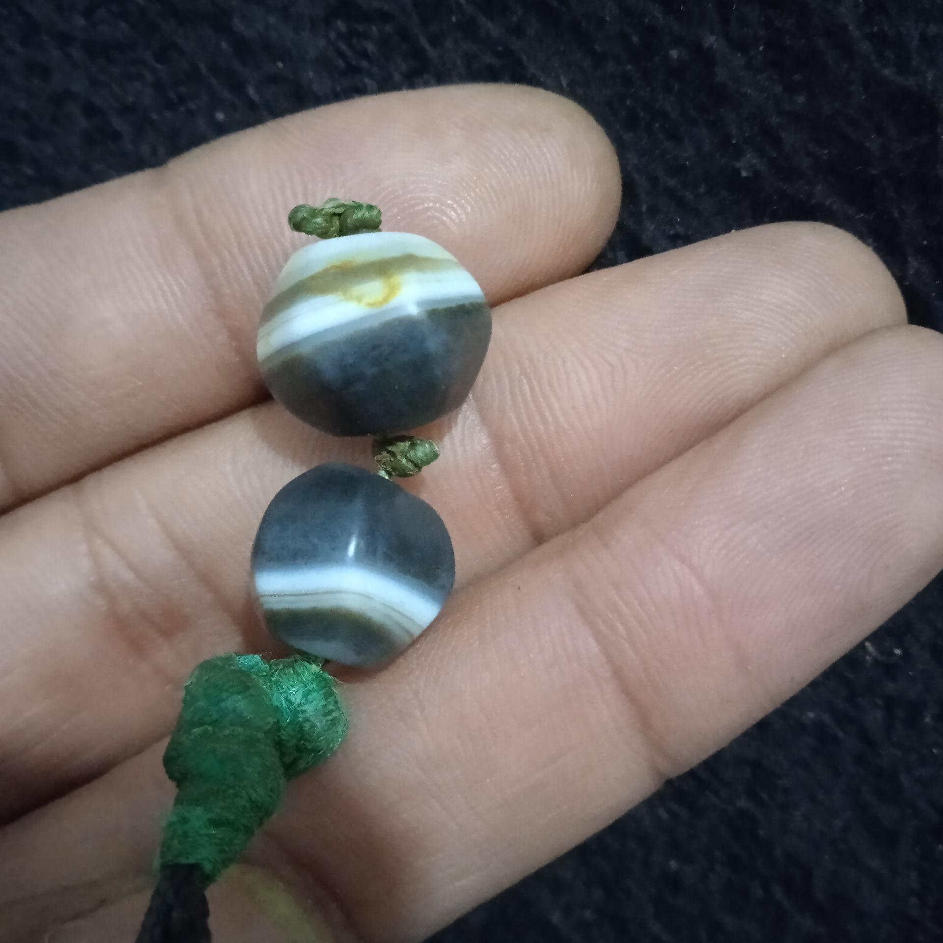 جفت مهره سنگ برد کهنه وتراش چند ضلعی سوراخ دار مارپیچ قدیم انرژی پور قوی