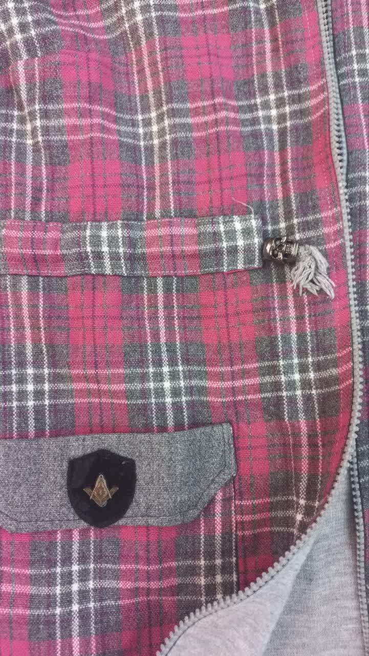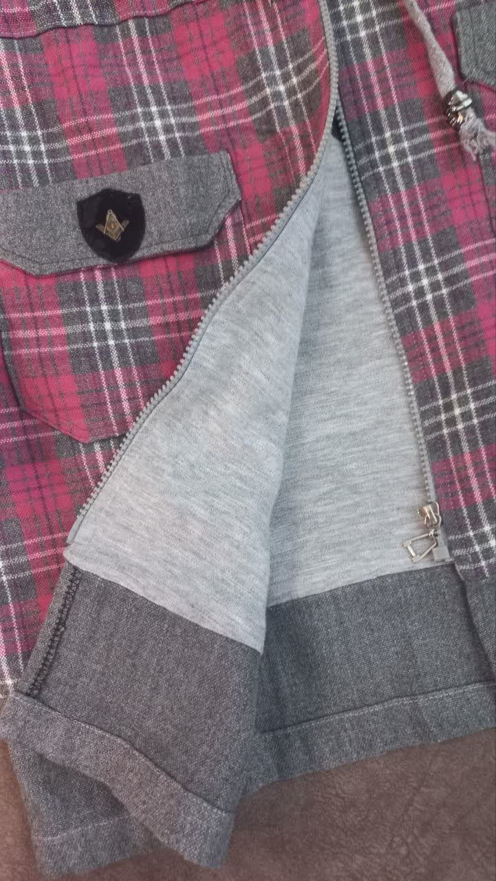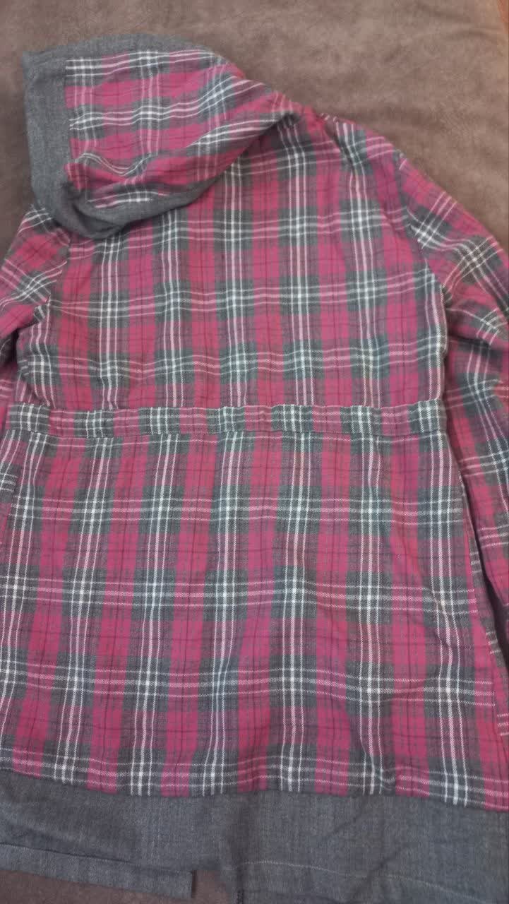 مانتو پاییزه کلاه دار چهارخونه صورتی طوسی سایز L
