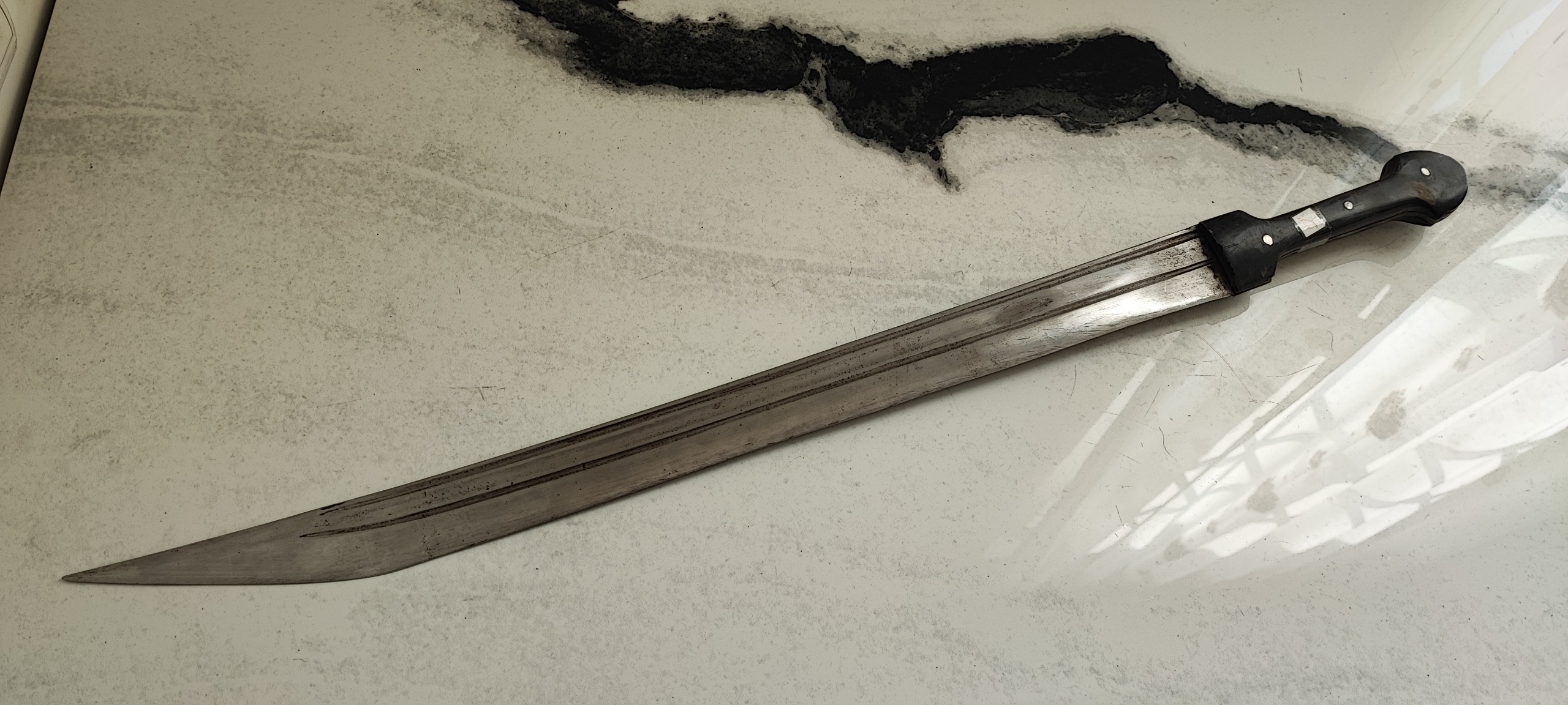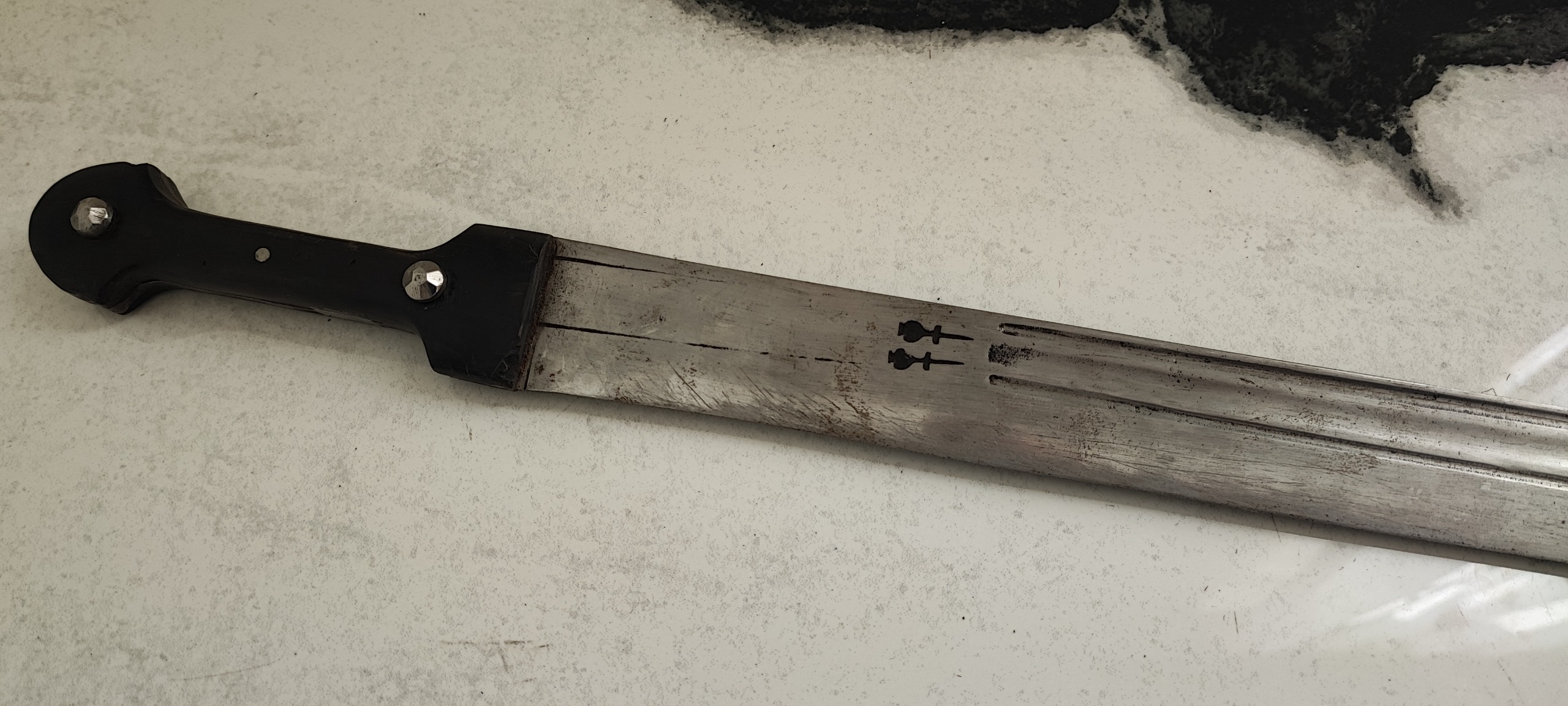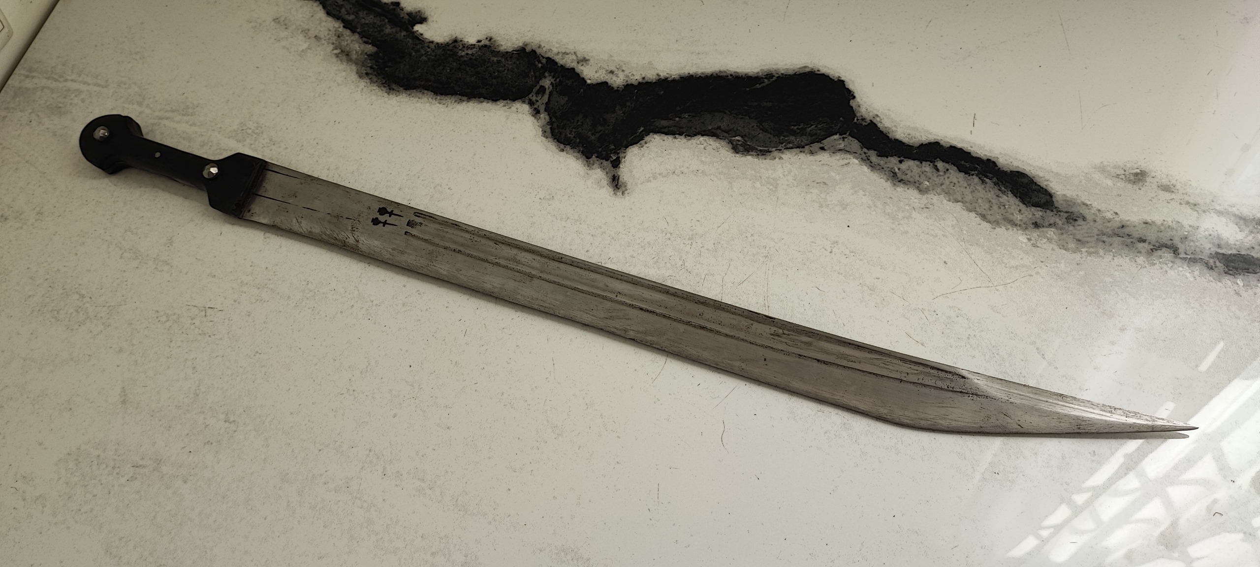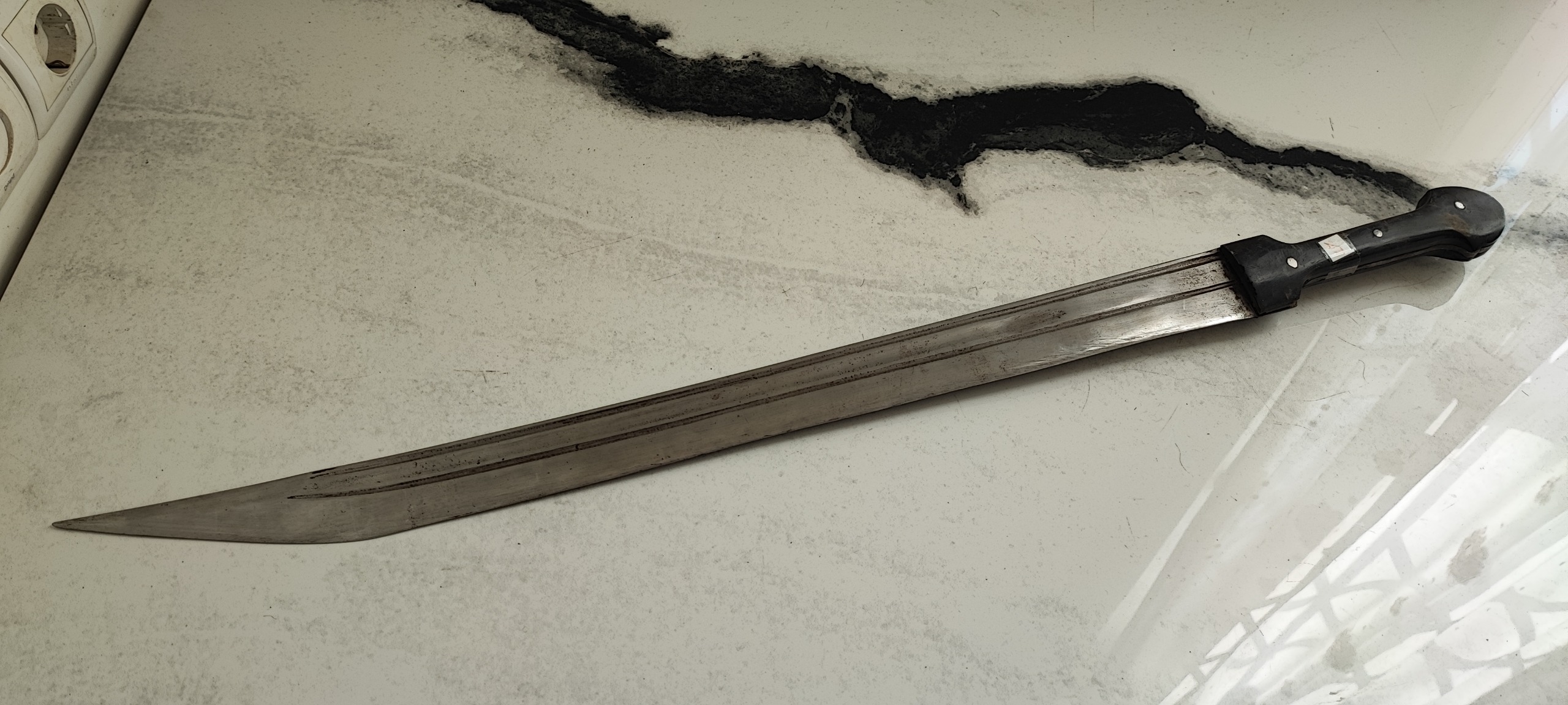 76 سانت طول، 4/3 سانت پهنای تیغ، 720 گرم وزن، دسته شاخ و تیغ فولادی، کیفیت زنده و تمیز و کمیاب و نفیس و کلکسیونی