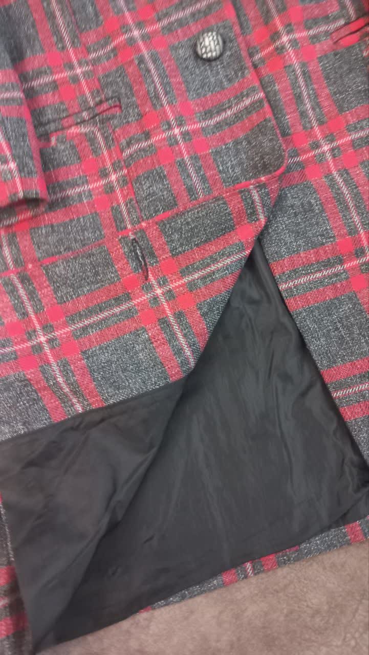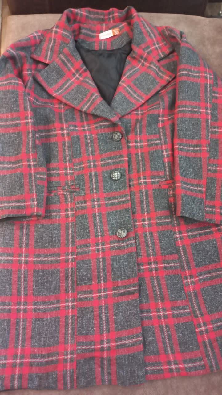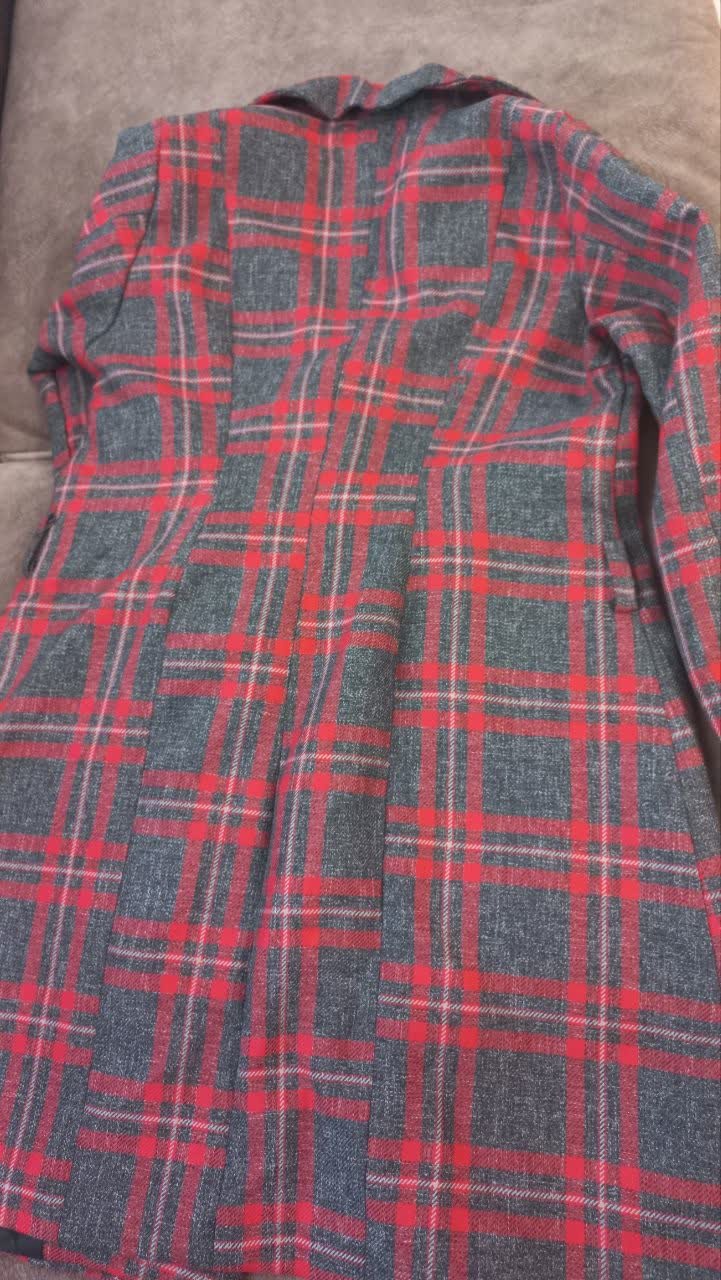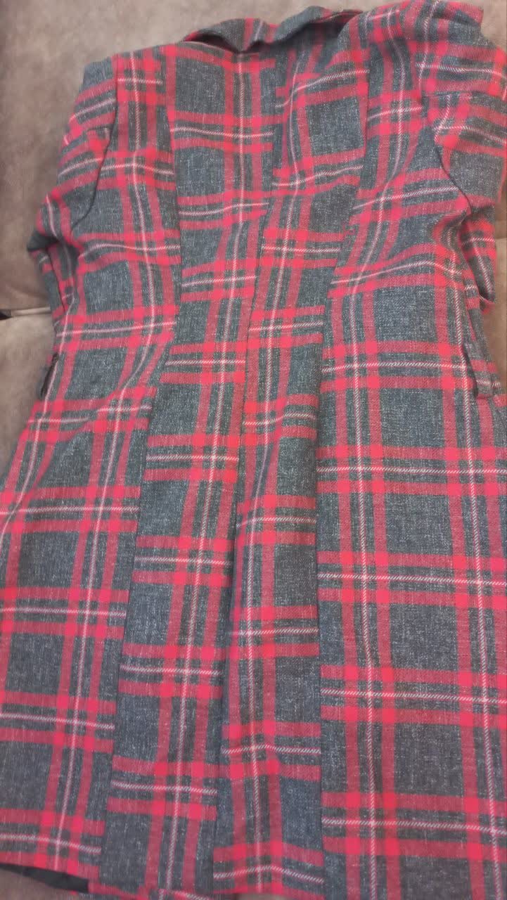 پالتوچهارخونه قرمز.طوسی سایز XLاستر دار قد80