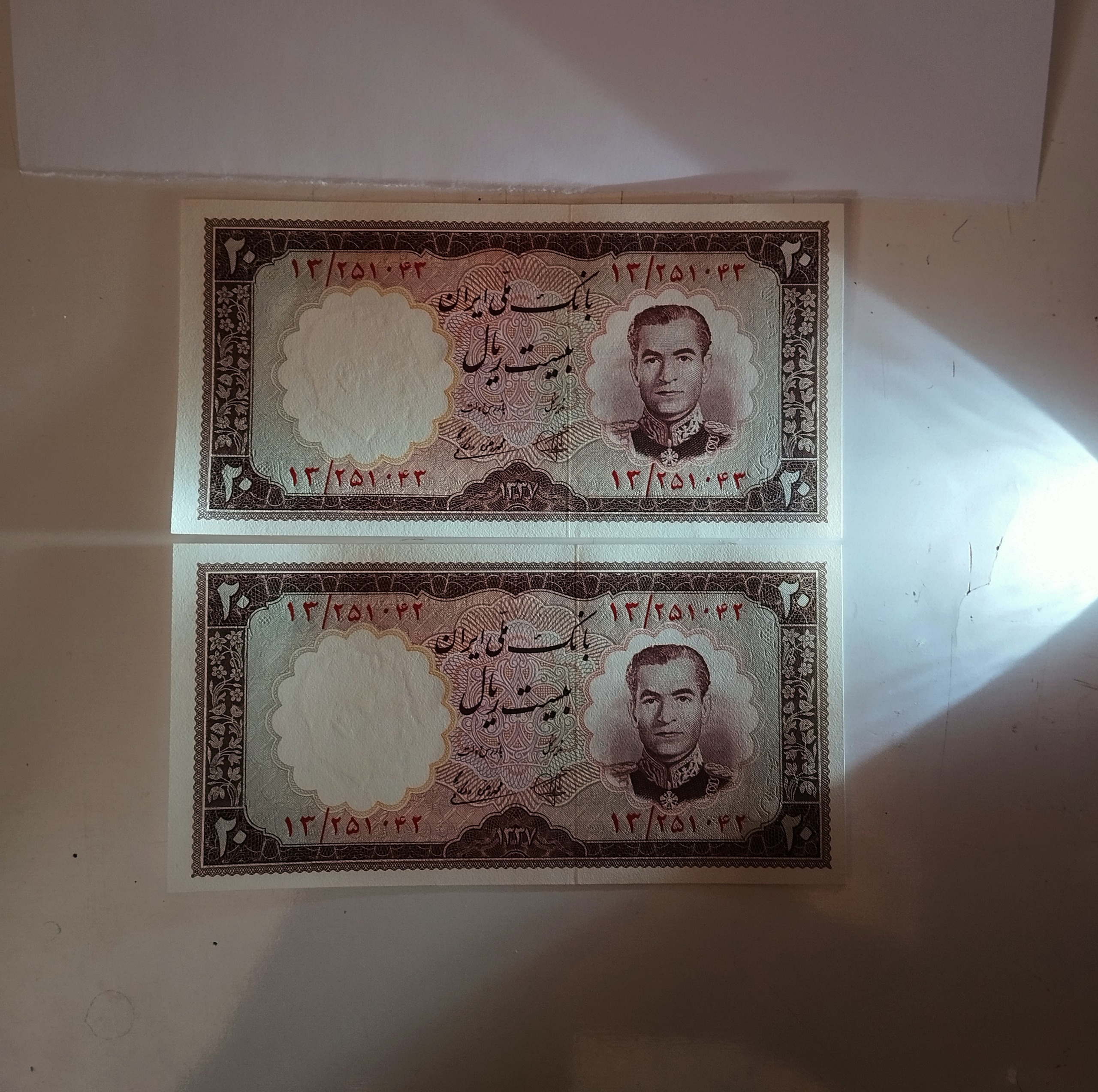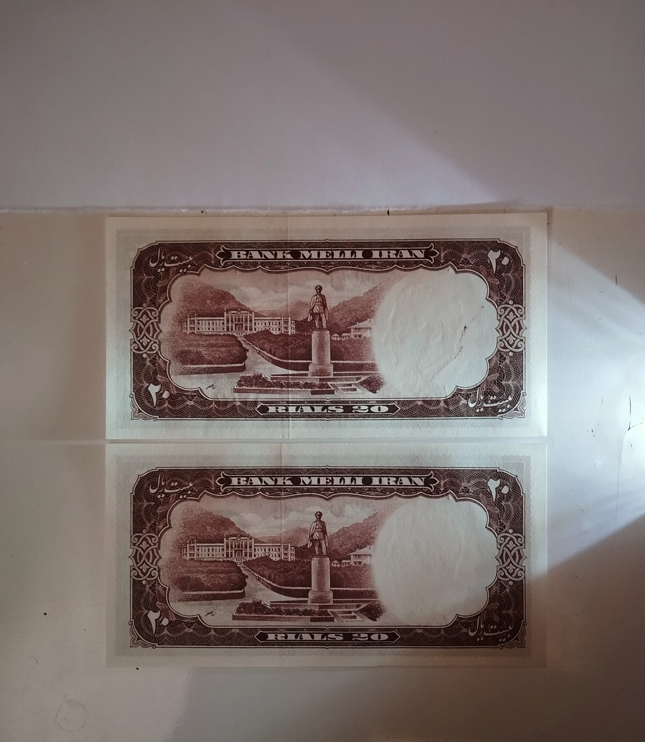 اسکناس جفت 20 ریال بانک ملی سری آخر(هفتم)توضیحات