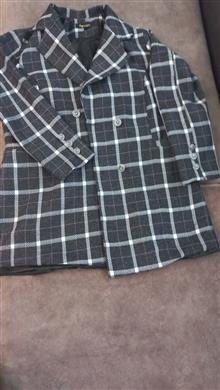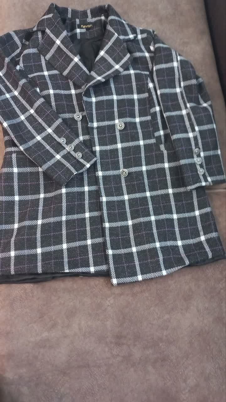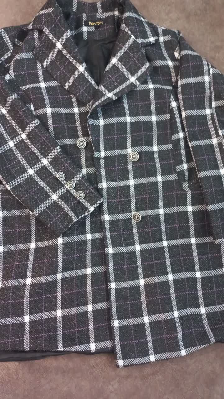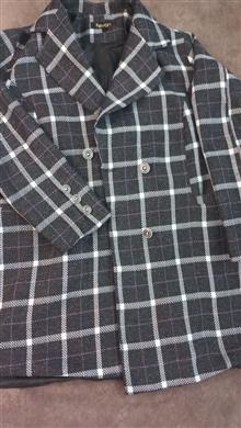 پالتو استر دار چهارخونه رنگ طوسی سایز xLاستر دارد
