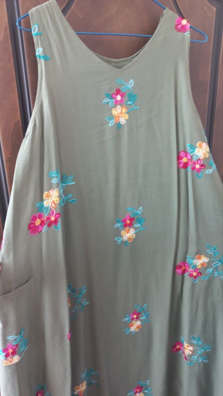 سارافون زنانه سایز xL نخی رنگ سبزقد زیر زانو