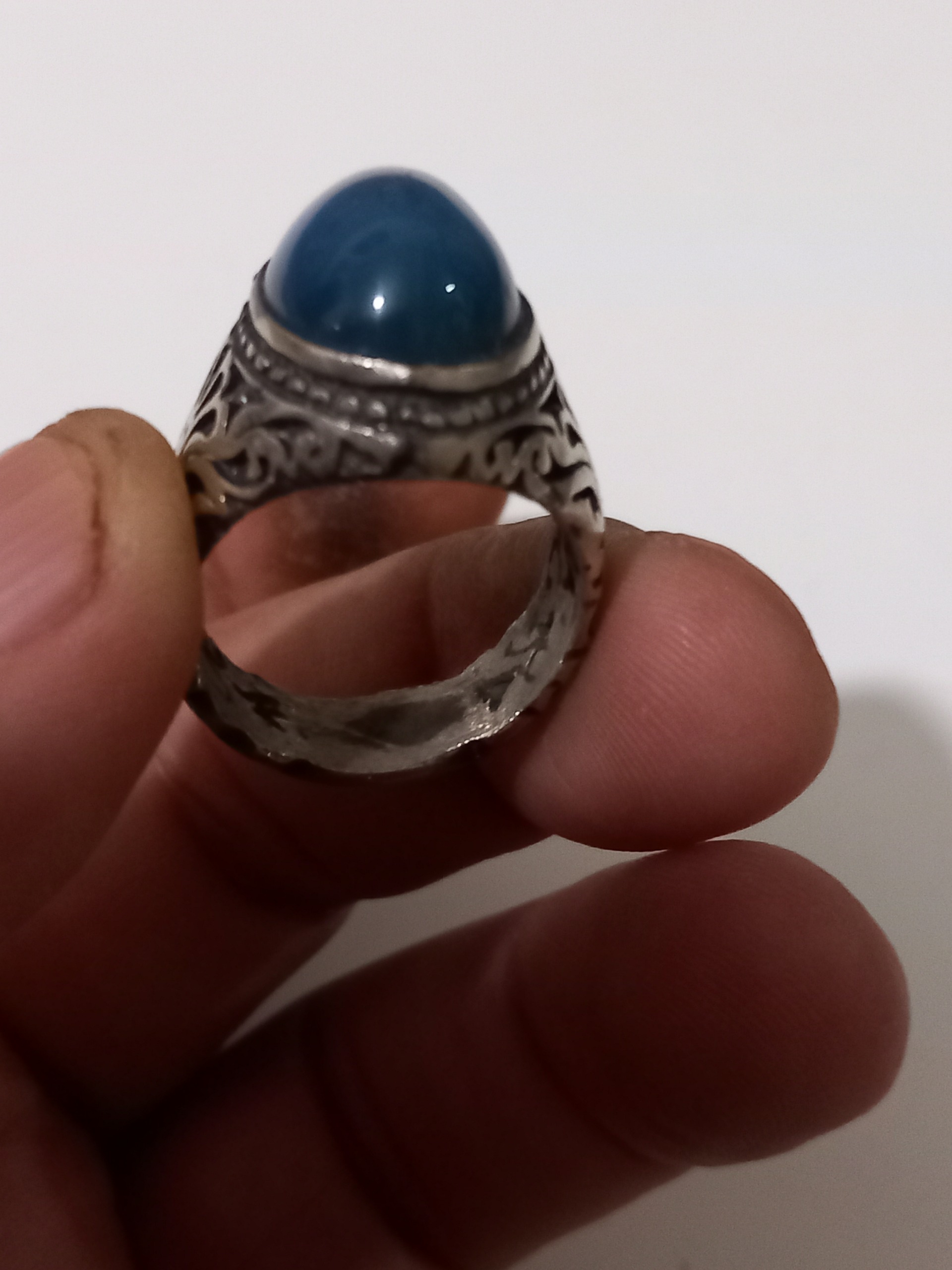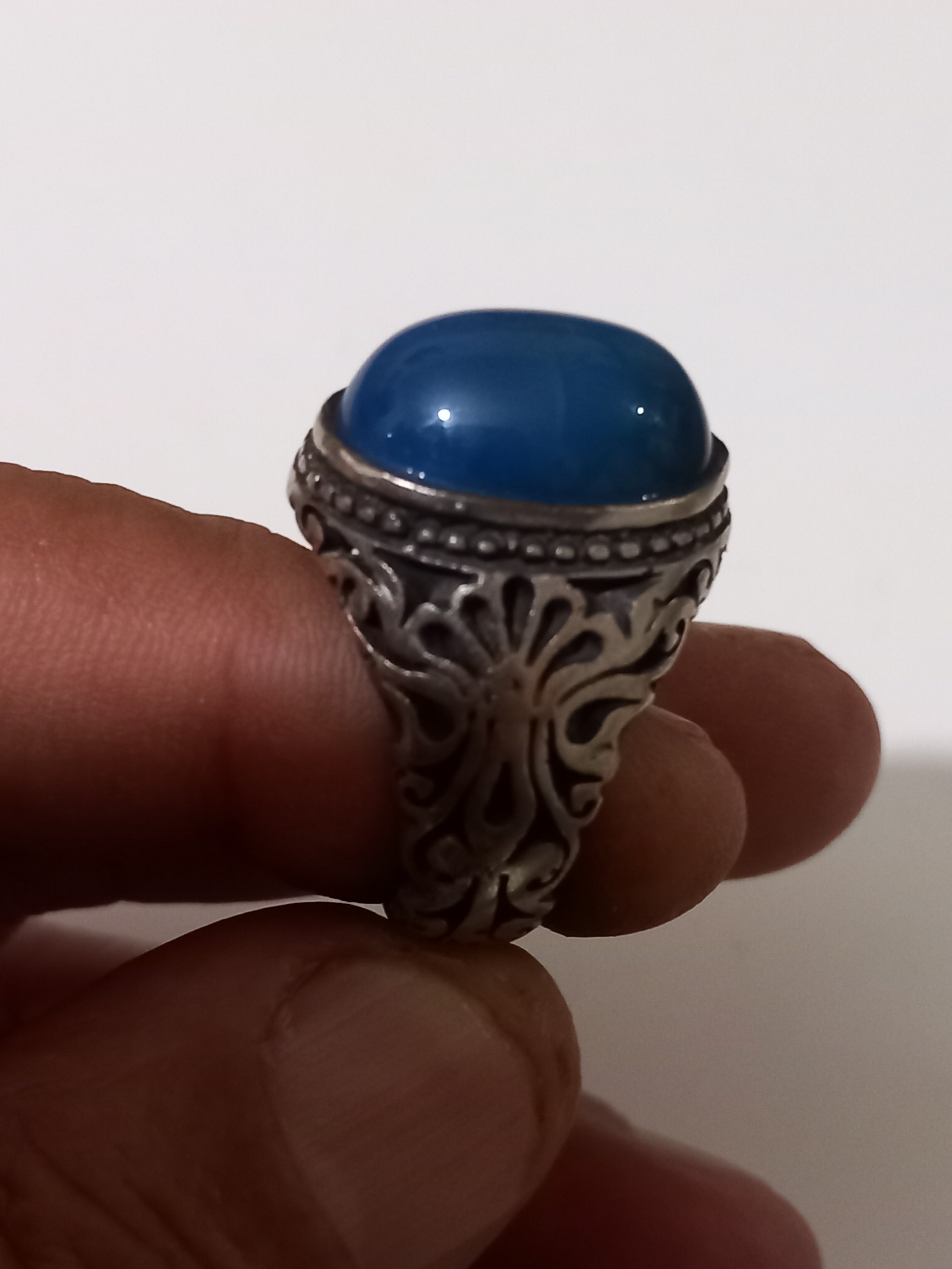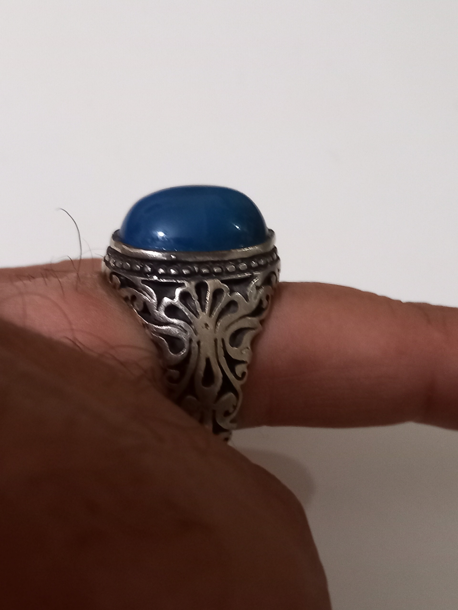 انگشتر باسنگ معدنی آبی خوش رنگ