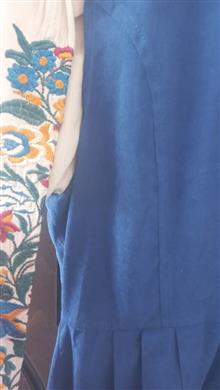 سارافون زنانه تترون گل دوزی سایز L جنس ابریشم رنگ ابی کاربنی