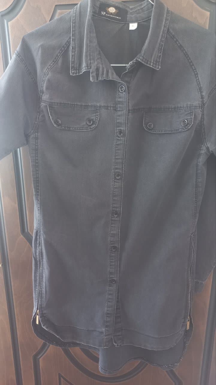 مانتو جین طوسی تیره طرح زیپ دار سایزL