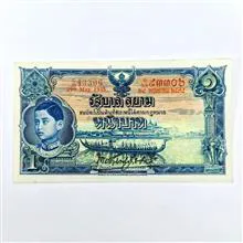 اسکناس یک بات تایلند 1939 با تصویر رامای هشتم در دوران کودکی، یکی از اسکناسهای نادر و تاریخی این کشور است. این اسکناس به رنگ آبی و به مناسبت تغییر نام کشور از سیام به تایلند منتشر شده است. طراحی جلوی اسکناس شامل پرتره پادشاه و نشان سهسر فیل (نماد پادشاهی تایلند) است، در حالی که پشت اسکناس نمایی از تالار تاجگذاری سلطنتی را نشان میدهد. این اسکناس با ویژگیهای امنیتی مانند واترمارک و چاپ دقیق، در میان کلکسیونرها از ارزش بالایی برخوردار است.