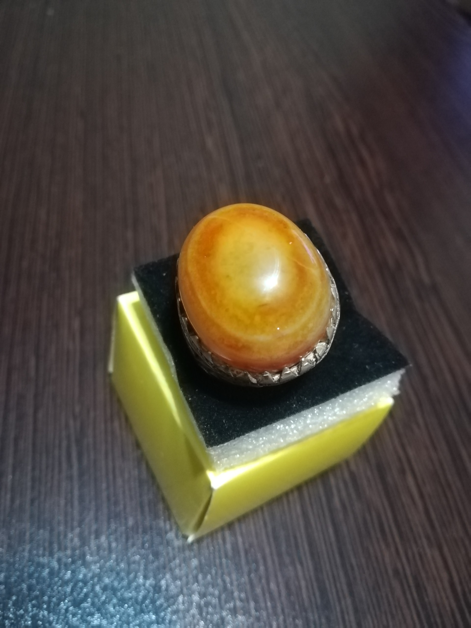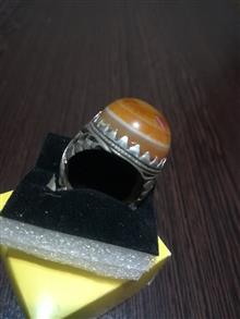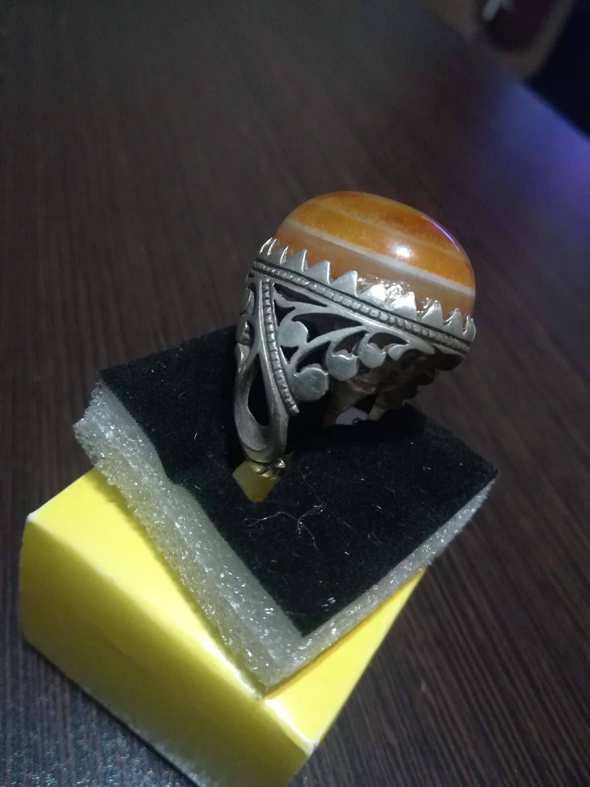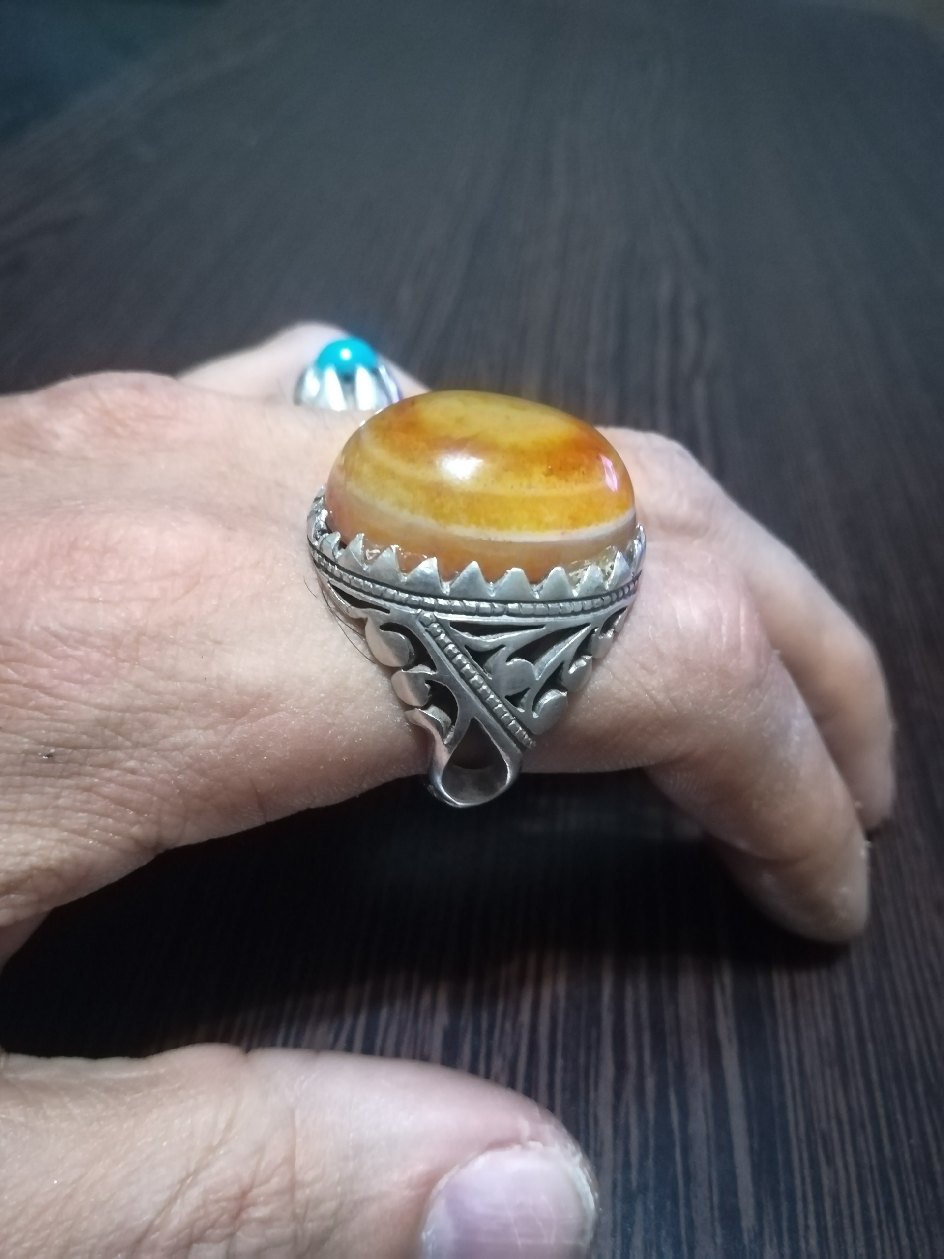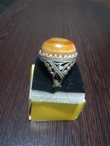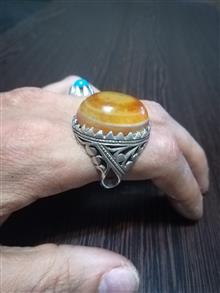 *عقیق ناب کهنه سه پوست سلیمانی درشت و بسیار ارزشمند و خوشرنگ سوار بر رکاب نفیس دستساز با اره کاریهای هنرمندانه و ظریف از جنس نقره خارجی اعلا عیار 925