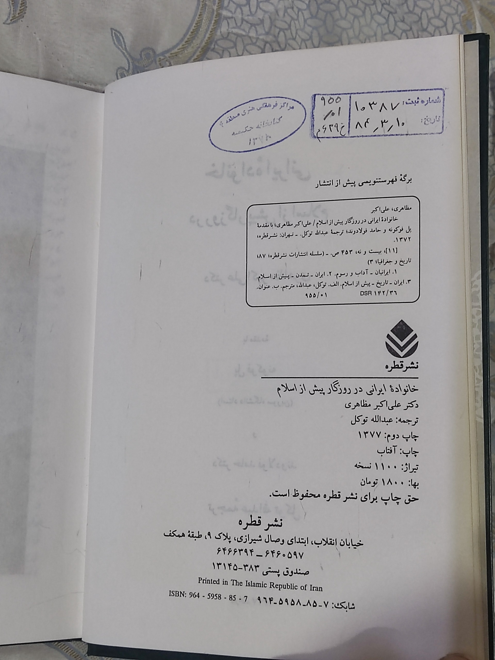 چاپ دوم ، تمیز و سالم ، بدون هیچ پارگی و نوشته ، مطابق تصویر ابتدای کتاب دو عدد مهر خوردگی دارد.