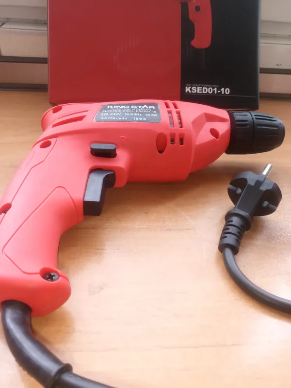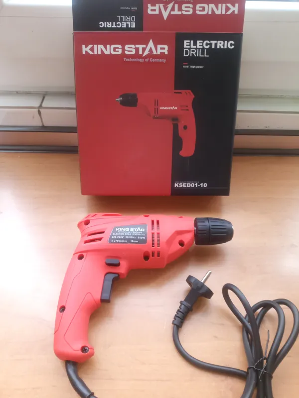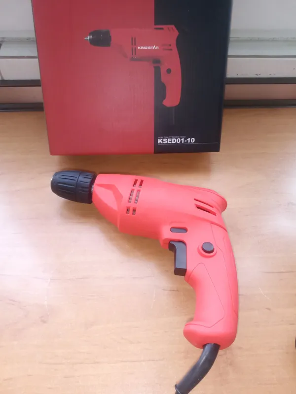 دریل برقی با سه نظام اتوماتیک 10نو آکبند مارک کینگ استار با تکنولوژی آلمان و با قدرت و توان 380 وات دارای چپ گرد و راست گرد میباشد درضمن موتوردریل صددرصد مس میباشد دارای کلید گازی جهت کم و زیاد کردن سرعت دریل