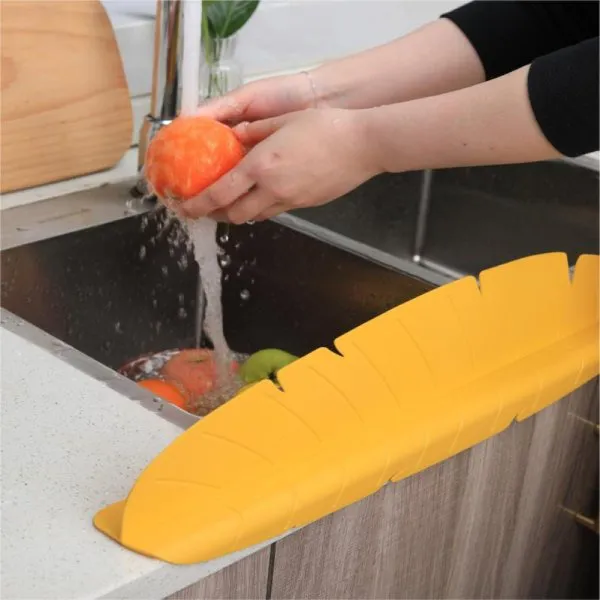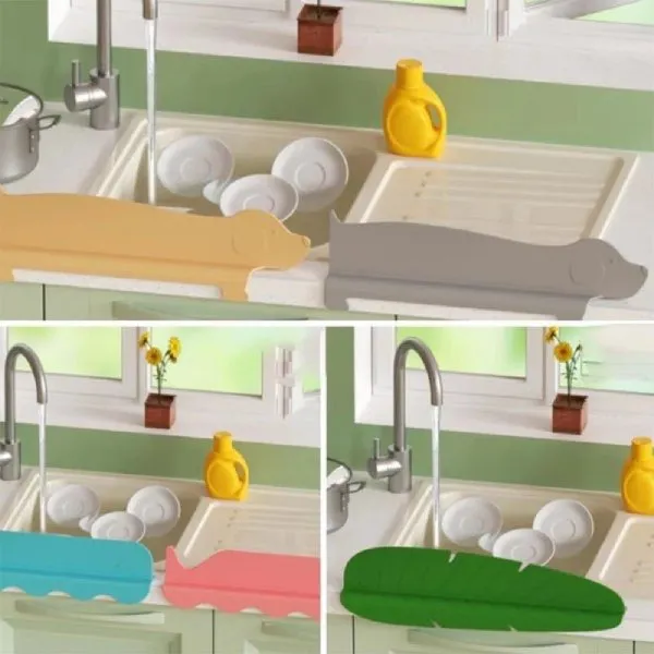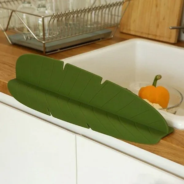 آبگیر جلو سینک طرح برگ از جنس منعطف و ضد آب سیلیکون است که باعث می شود با شستن ظروف و آبکشی آن ها نیاز به پیشبند نداشته باشید و لباس هایتان خیس نشود و همچنین از خیس شدن کف زمین و جلوی سینک جلوگیری می کند. در کنار آن مزیت قابل شستشو بودن آن به سادگی ممکن است و بسیار شیک است، جلوی دستتان هست اما دست و پاگیرتان نمی شود به دلیل اینکه منعطف است و به دستتان آسیبی نمی رساند.