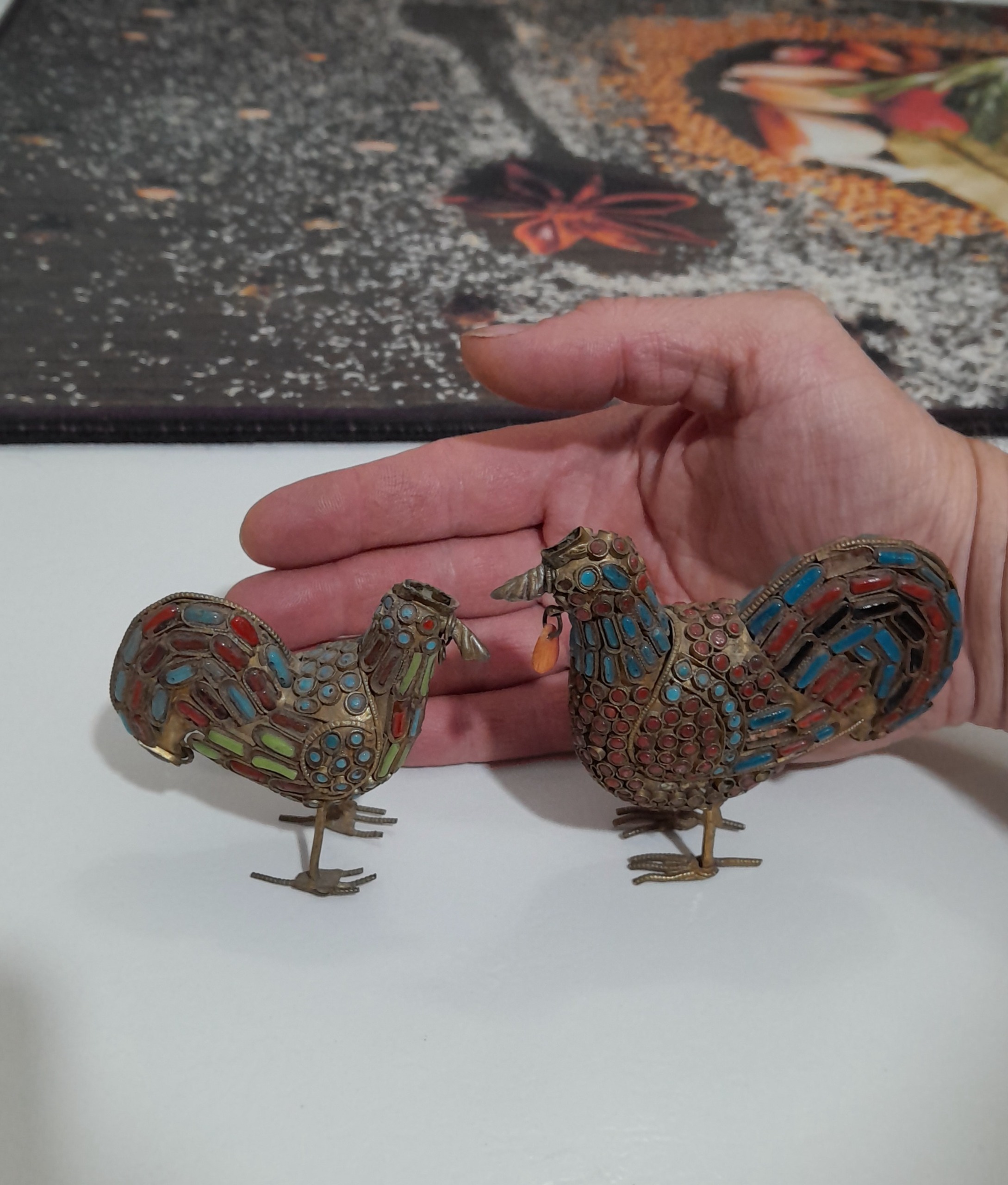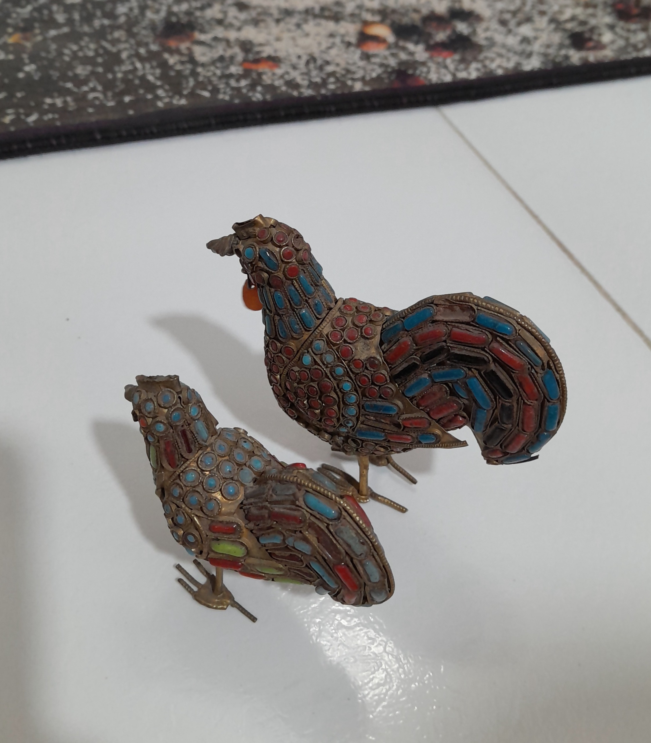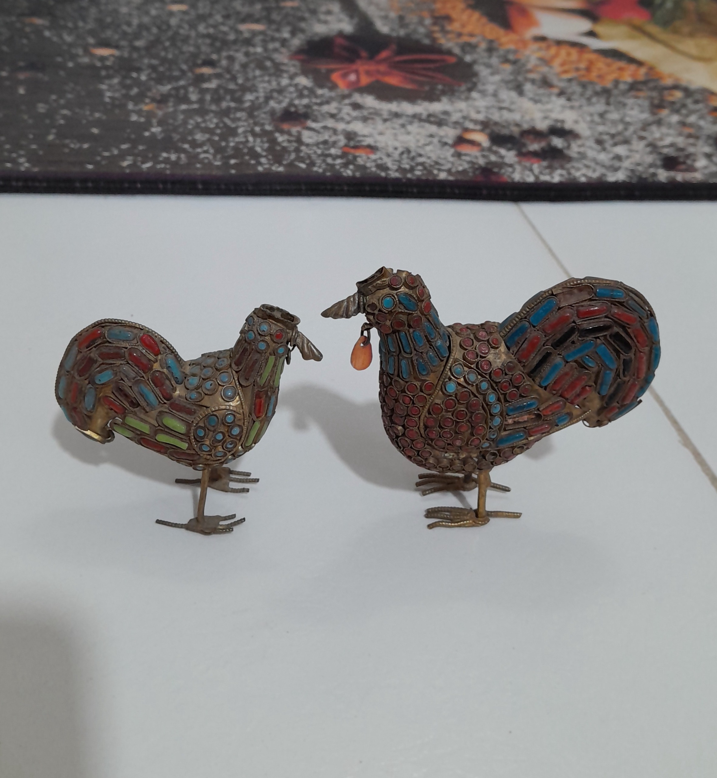 مجسمه مرغ و خروس برنجی قدیمی باهم 3/500/000 تومان.