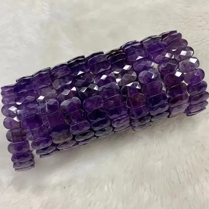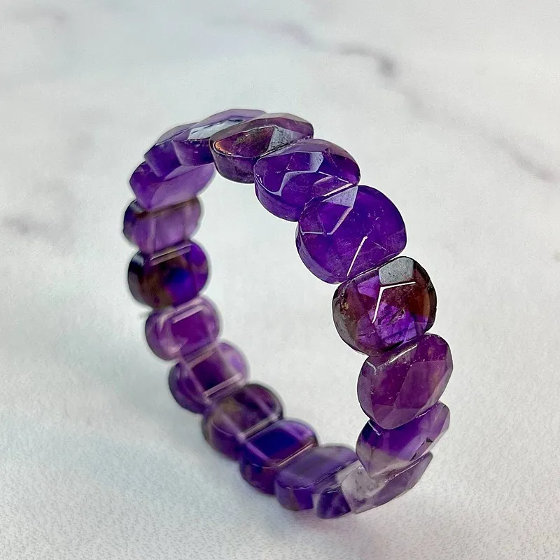 دستبند کشی پهن تراش دار آمیتیست اصل معدنی
