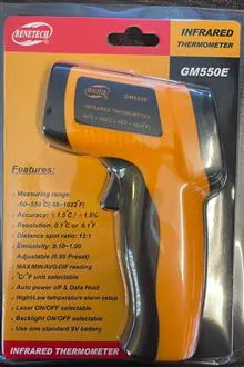 دماسنج لیزری GM550 ساخت کمپانی بنتک از کشور چین است. ترمومتر مادون قرمز GM-550 با دقت بالا قابلیت اندازه گیری دمای سطح اجسام تا 550 درجه سانتی گراد را بدون تماس دارد.