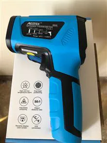 ترمومتر لیزری IR05 ساخت مستک چین یک ترمومتر لیزری مادون قرمزپر قدرت و جدید با گستره اندازه گیری -50 تا 1200 درجه سانتی گراد است . این دما سنج غیر تماسی برای کاربرد صنعتی و عمومی کاربرد دارد . این دماسنج لیزری می تواند دمای سطحی جسم هدف را در رنج 50- تا 1200 درجه سانتی گراد (58- تا 2192 درجه فارنهایت) اندازه گیری کند. همچنین نسبت فاصله به قطر اندازه گیری در این دستگاه 50:1 می باشد.این ترمومتر توسط شرکت پترو پژوهش خاورمیانه وارد شده است . از دیگر ویژگی های این دماسنج می توان به پشتیبانی از پراب اندازه گیری دما Type K با رنج اندازه گیری 50- تا 1370 درجه سانتی گراد (58- تا 2498 درجه فارنهایت)، حساسیت نوری قابل تنظیم، دقت و رزولوشن بالا، سرعت پاسخگویی بالا، صفحه نمایش LCD مجهز به نور پس زمینه است .